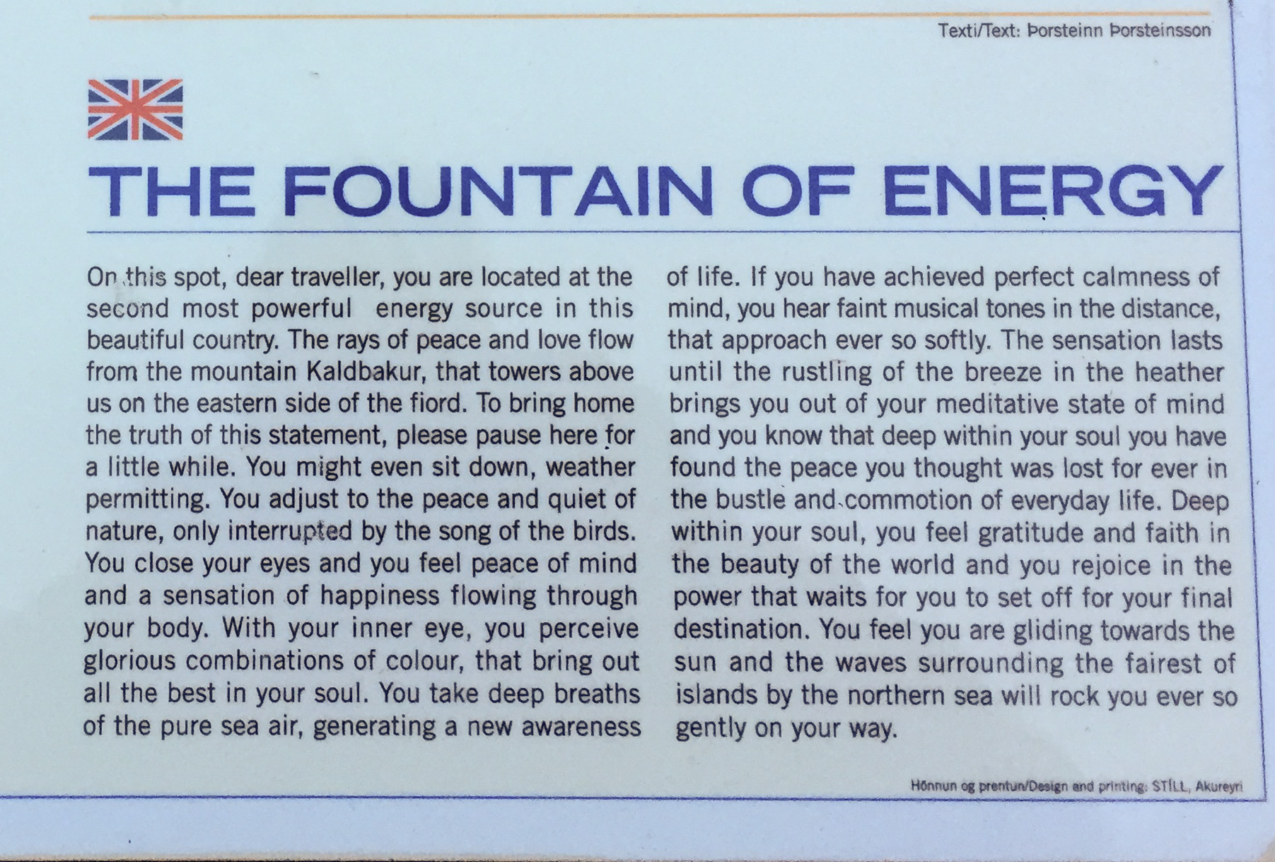 So today I walked to the most important site on the island- an Orgasmic energy spot if you rely on the sign…. where a couple of benches sit facing Cold Back Mountain, take the time to read the sign- you will be put into a trance like state; who ever wrote it quite clearly writes for the Icelandic Mills and Boon on the side. Unfortunately for me, my callous and unspiritual nature meant I was unable to hear the faint musical tones, and my puffing from hiking there meant the sensation of gliding away was also somewhat debatable, I mean to take a bottle of wine up there soon and have another crack. :)Just click on the images to make them bigger… all you visually impaired readers.