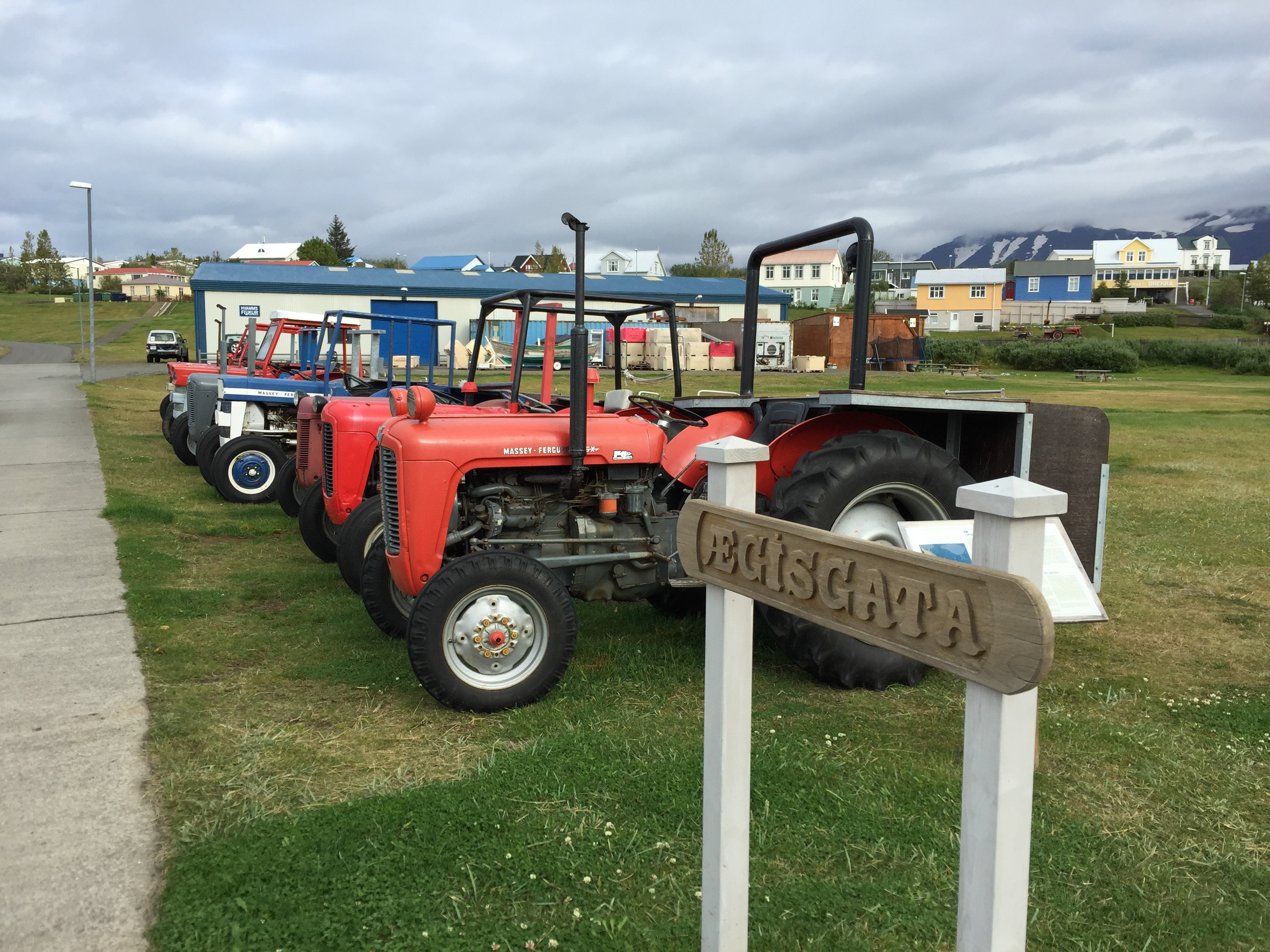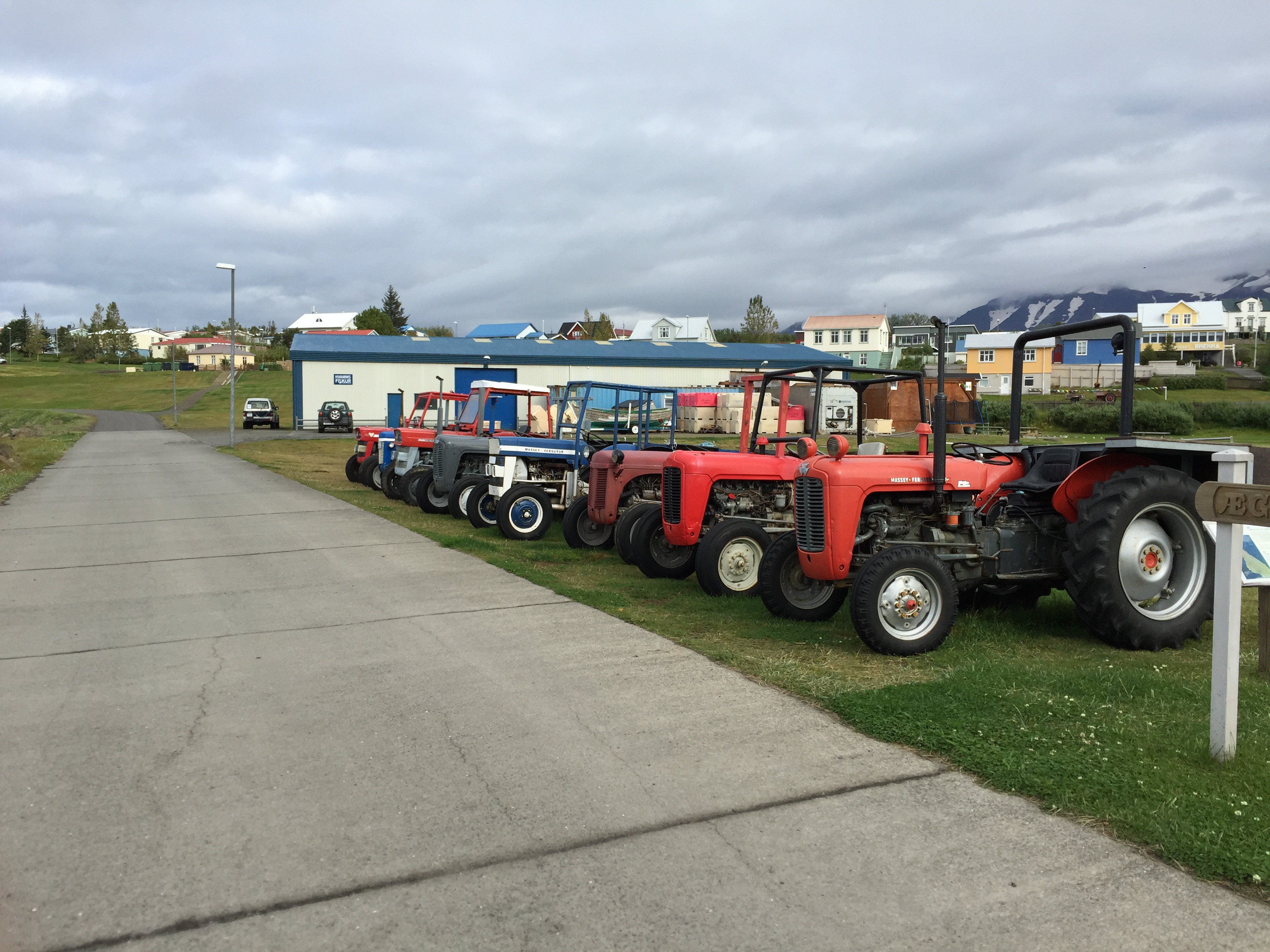Yesterday I left the island… it was exciting, I went to a supermarket, a bottle shop and had a coffee!!. The lovely local who is the contact for the residency on the island, Linda, took me in with her to Akureyri. The bus company who runs in the area refuses to cooperate and actually time its runs with any of the ferry departures and the couple that do fit they still drop you 15kms away – so I am a little dependant on hitting up locals for lifts, which they are very generous in offering. Most locals have a car and a tractor (I will come back to this point) on the island and a car at the ferry stop as it is a good 25 minutes to Akureyri the bigger town, or 10mins to Dalvik. On the ferry over I questioned Linda on why the locals all had tractors- I am not sure what I was expecting but certainly not the story I got. Apparently about 30 years ago, a local bought the first tractor over… and there started the trend. Its like a rubik’s cube fad that just never died out. Now its just the done thing… a brightly coloured tractor, the bigger the better. Why you need two vehicles in a town of about 50 houses with three streets is slightly perplexing… occasionally one chugs down the street, but mostly the just sit on the from lawn looking funky!