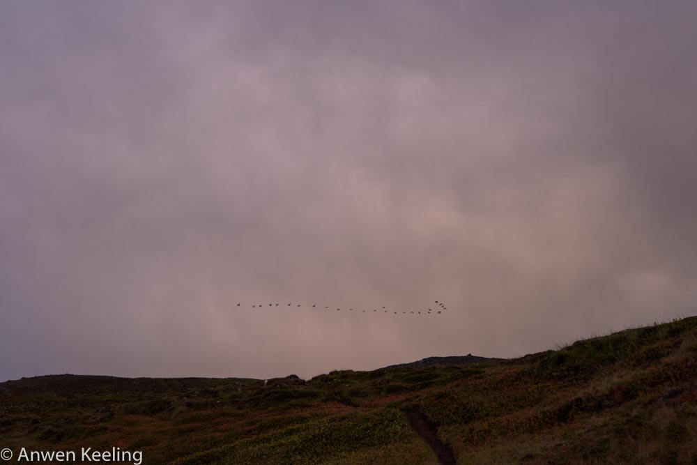 Sun – The days are getting shorter, we are loosing approximately 7 minutes of daylight a day. A few days ago we had exactly 12 hours and 1 minute, today will be 11 hours and 26 minutes of daylight. On my walk yesterday I experienced typical Arctic weather- I left at 6.30am and the sun was peaking out, not a breeze about to ruffle the ptarmigans feathers… after half an hour and some amazing skies, it poured, sleeted, and the wind howled… and by the time I made it back to the house, the weather was playing coy, and was back to being all calm. On the walk flocks of Greylag geese flew about the skies honking- probably trying to tell me that all hell was about to break loose, and I was too busy looking at the pretty colour of the clouds to take any notice of the birds.