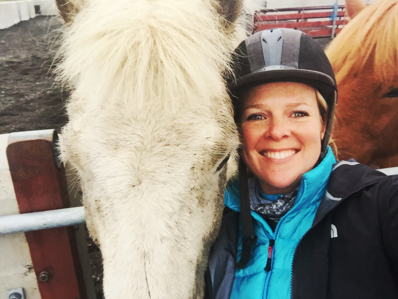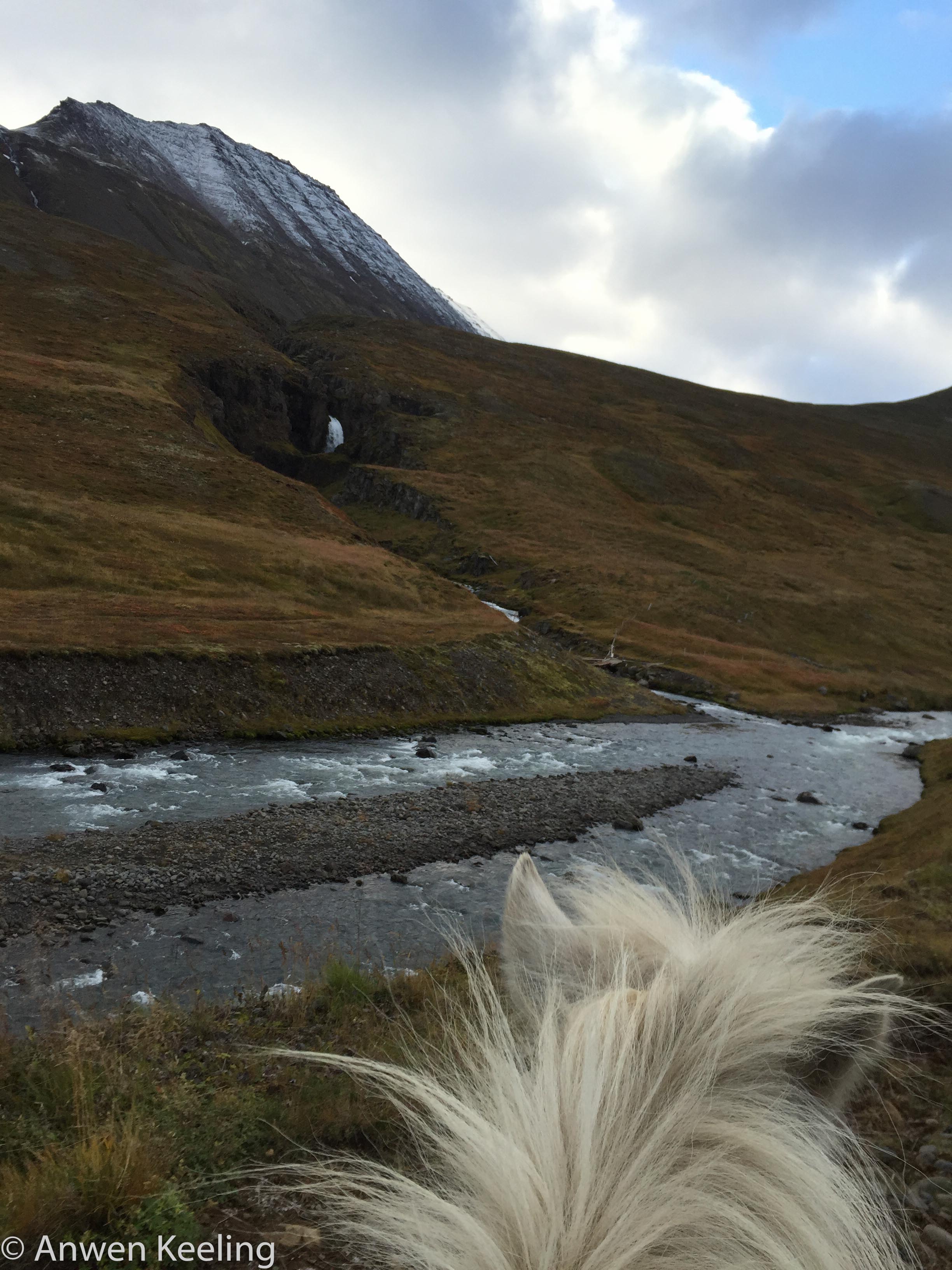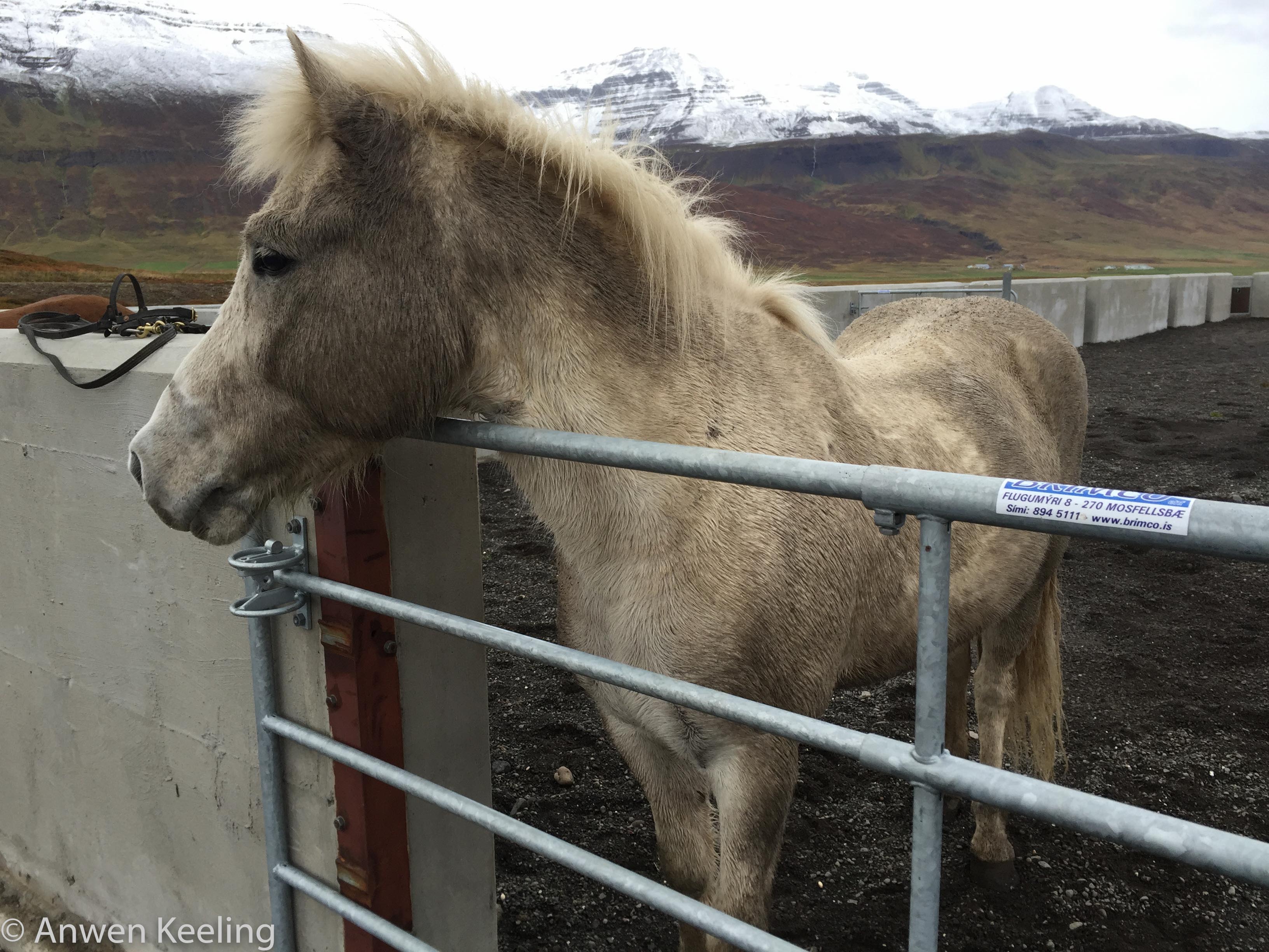 I rode Grár (translates to Grey…) – who surprisingly was a grey horse! I was warned he could be “powerful” I have learnt that the Icelanders like to use the word “powerful” as a code word for crazy… and never to get on a horse who is “very very powerful” – luckily we got on just fine and none of the behaviour explained to me was exhibited- he was just a nice forward little horse with a soft mouth. We rode on from the yards for another 5kms to a farm where we left the ponies in a paddock with a particularly fat pinto horse. The ride was beautiful; we rode deep into the valley to ‘Þverá’, with towering mountains swathed in snow looming over us from each side. At the end of the valley a large glacier glistened… This is where the herding starts as the horses have already been brought down from the mountains by the locals and are in a large holding paddock just below the glacier; whilst the locals stay in a little hut called the ‘Stekkjarhús.