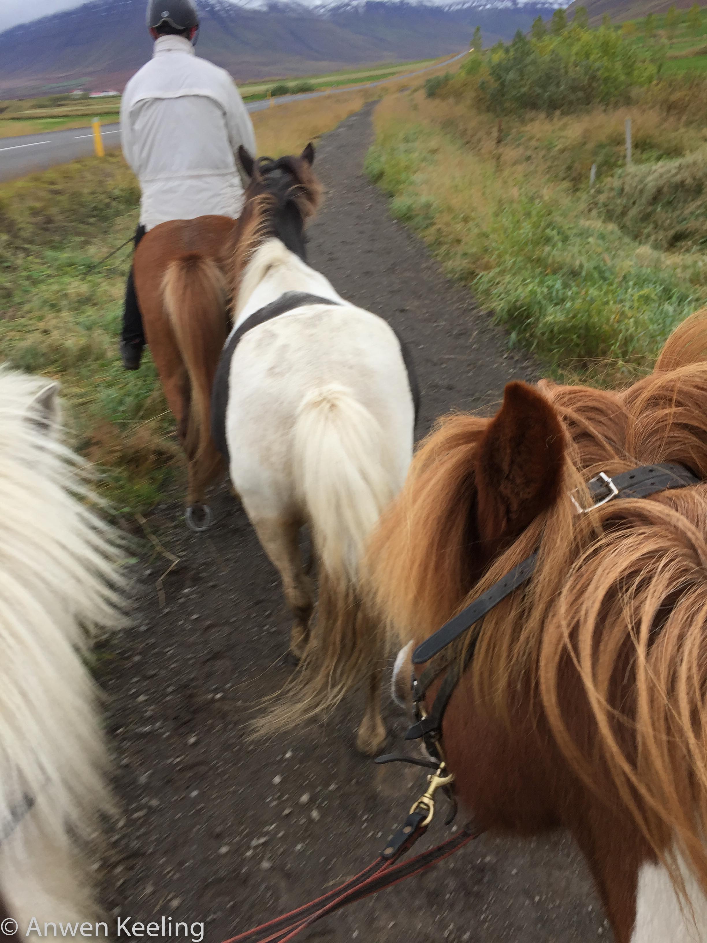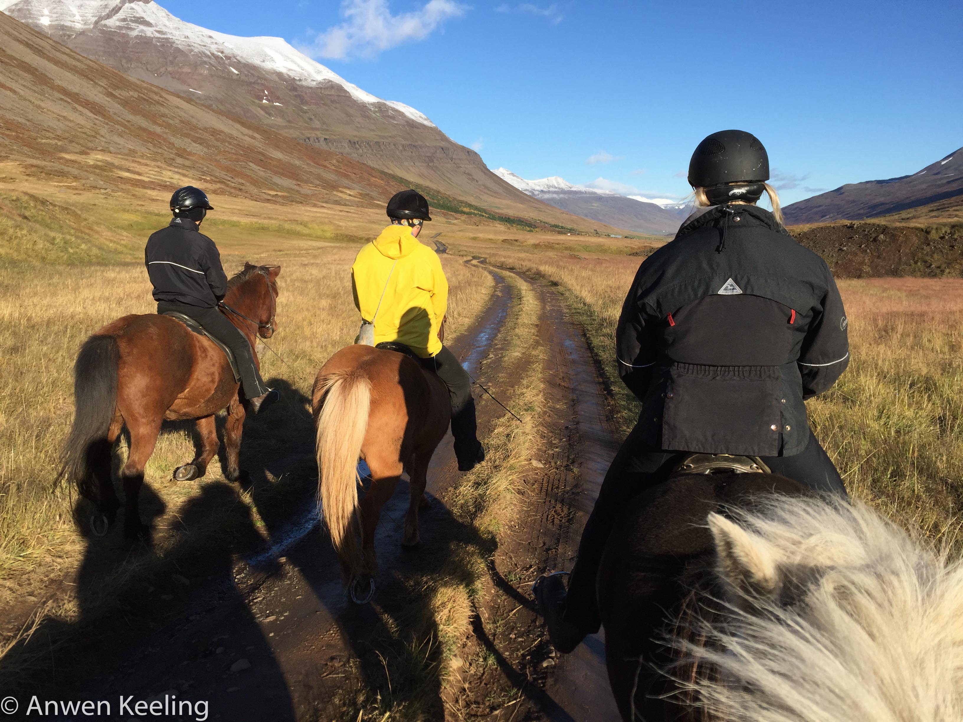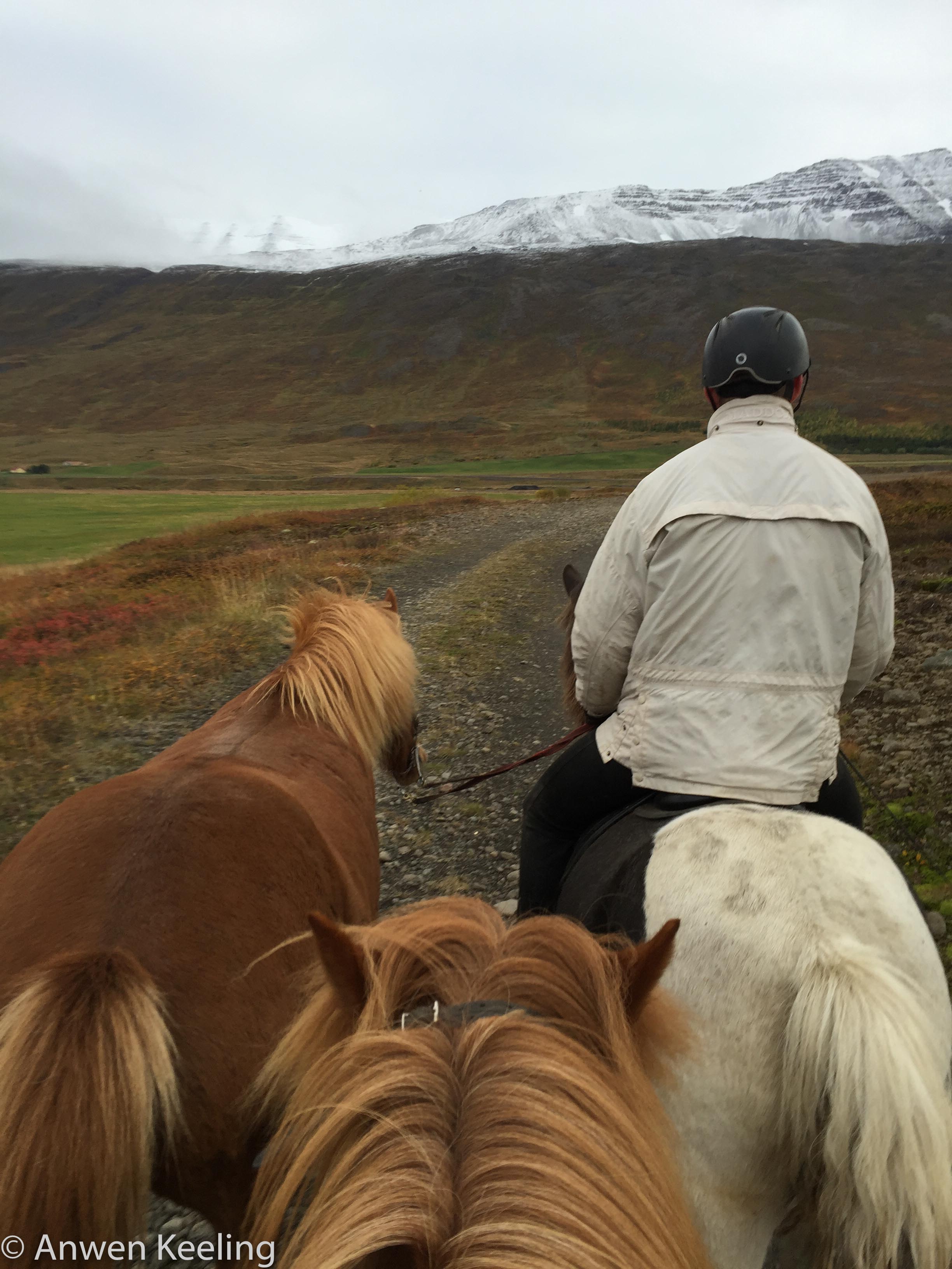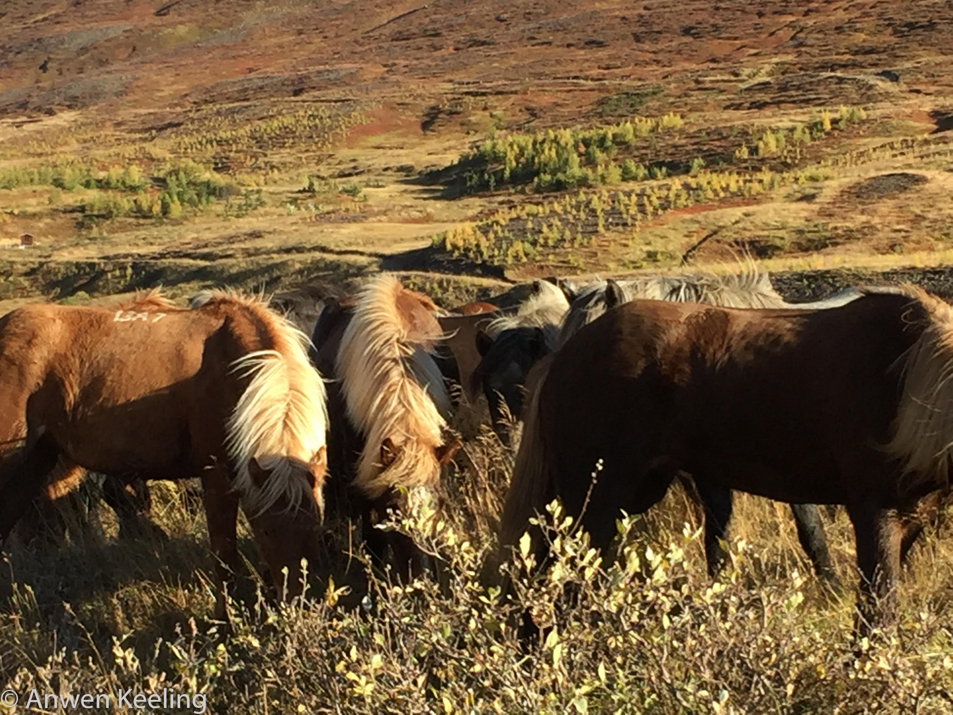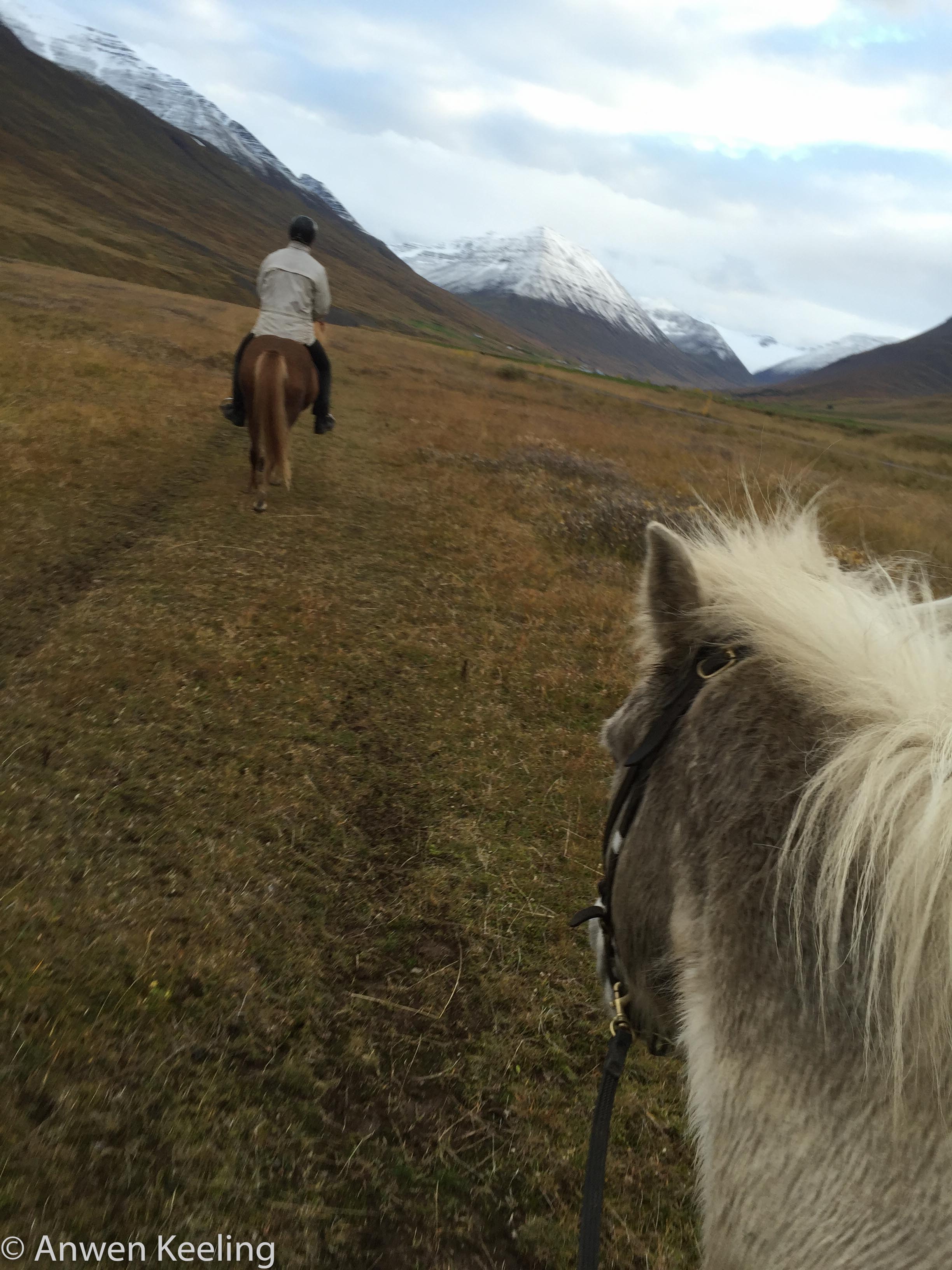 On Friday I caught the midday ferry to be met by Simbi’s son Hjörleifur (Hjölli), and true to form, before any adventure can be had it seems some time spent having cheese sandwiches in Simbi’s kitchen was required. Hjölli is 15 years old and one of Northern Iceland’s top swimmers and a natural horseman. The two of us, and a young girl that mucks outs stables in lieu of a ride were to take a few horses up the valley in preparation for the round up. It was a few hours ride, Hjölli and I ponied a horse each (rode one and led one) down to the round up yards at ‘Tungurétt’- the extra horses were then deposited with some others in a paddock next to the yards to await the group of tourists whom will be joining Simbi for a couple of hours tomorrow. The extra ponies had been quite handy -we swapped back and forth on the ride, every 40mins or so- just hopped off- chucked the saddle on the other horse and kept going. It’s the done thing in Iceland to have multiple horses… you rarely hear of someone owning just one horse, and most Icelanders are quite shocked I own just one- even when I point out it weighs 750kg- and is probably equal in weight to three of their horses… The good thing is they are all roughly the same build, and even if their backs are a little different- the amount of hair adds good padding, so they seem to be very easily interchanged. I was quite pleased with myself as after my not entirely successful attempt on the speedy mare, I had analysed Simbi and Son, and had come up with the position I call the “Ride-On-Lawn-Mower Position”, you thrust your legs a bit forward and lean back a little, and enjoy the view, and try not to do too many circles. It seemed to work, and I look forward to getting back on Thomas when I get home and having my coaches yell at me!
