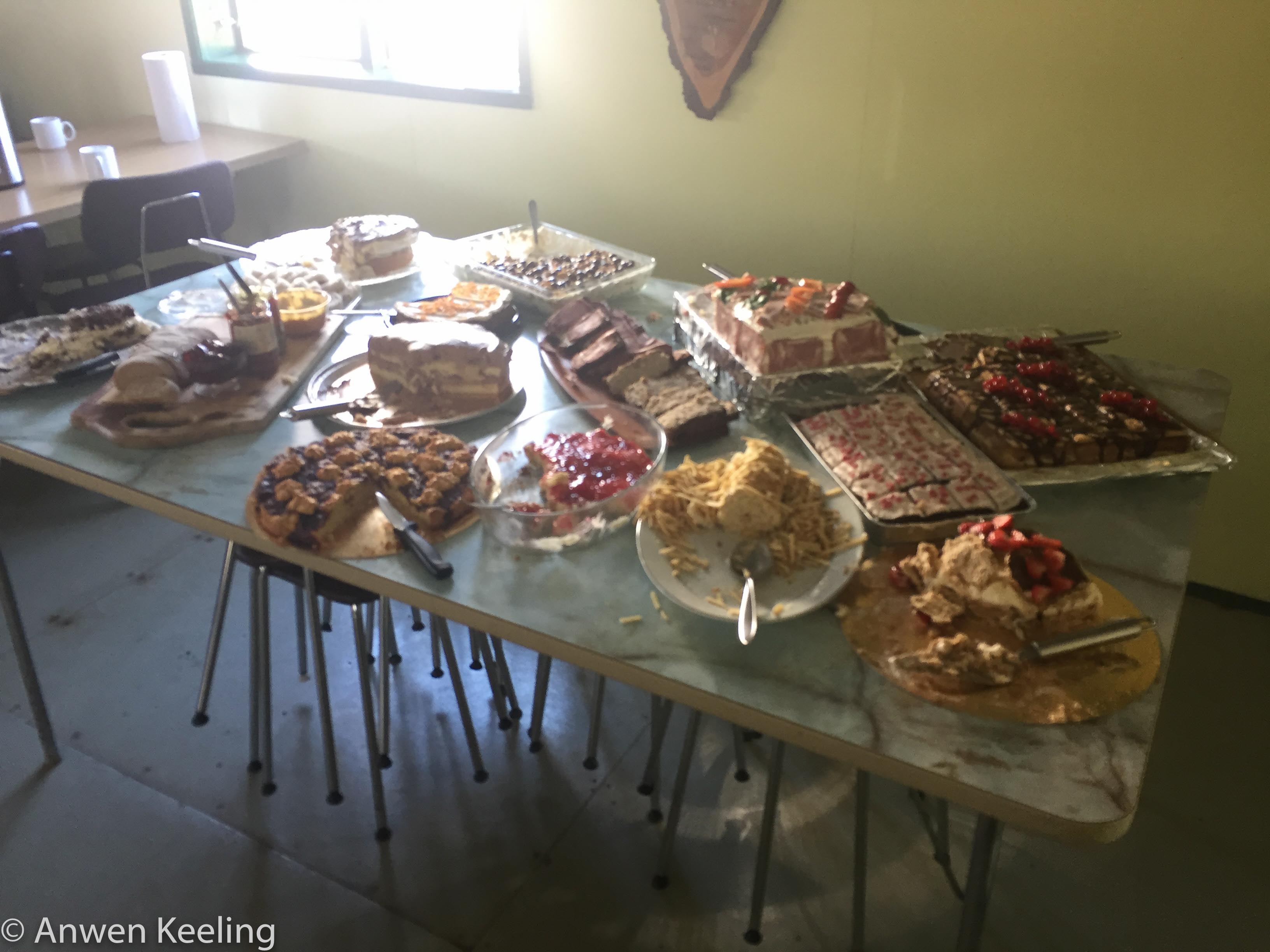 The sorting yards- a bit less civilised than the sorting hat used in Harry Potter but you get my drift, 134 horses in a large central pen with about 20 smaller pens leading of the central ones. The aim is to work out which are your horses and get them into the smaller pens, most are microchipped and some branded. Remarkably these young horses were all very good and no one was kicked or trampled- the good thing about their size is they are not intimidating. While the sorting takes place, a fantastic spread of cakes and savoury delights can be found for a small fee inside- once more the hard liquor is brought out – to flavour the coffee… and after eating more than required, its is time for the final stage of the muster.