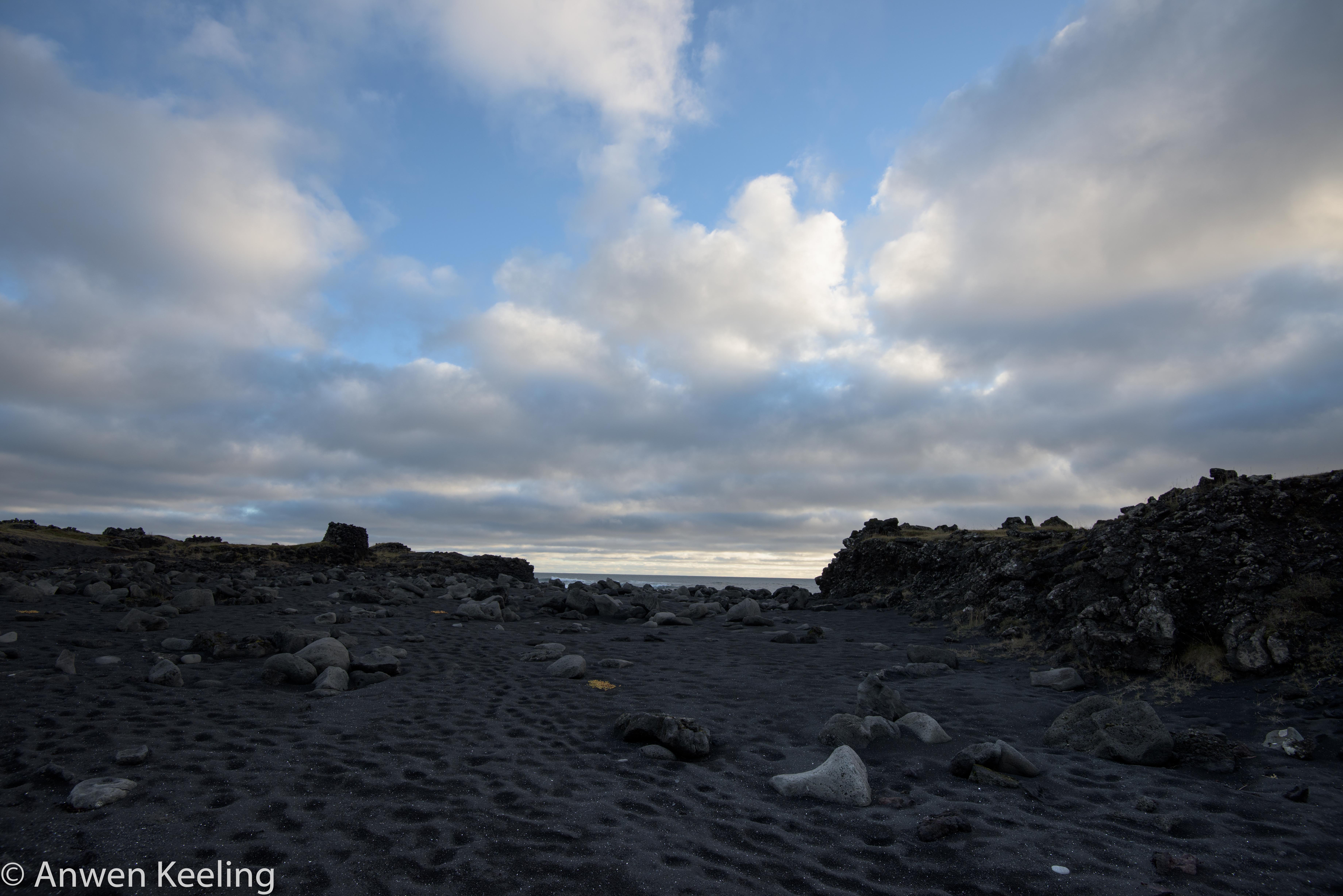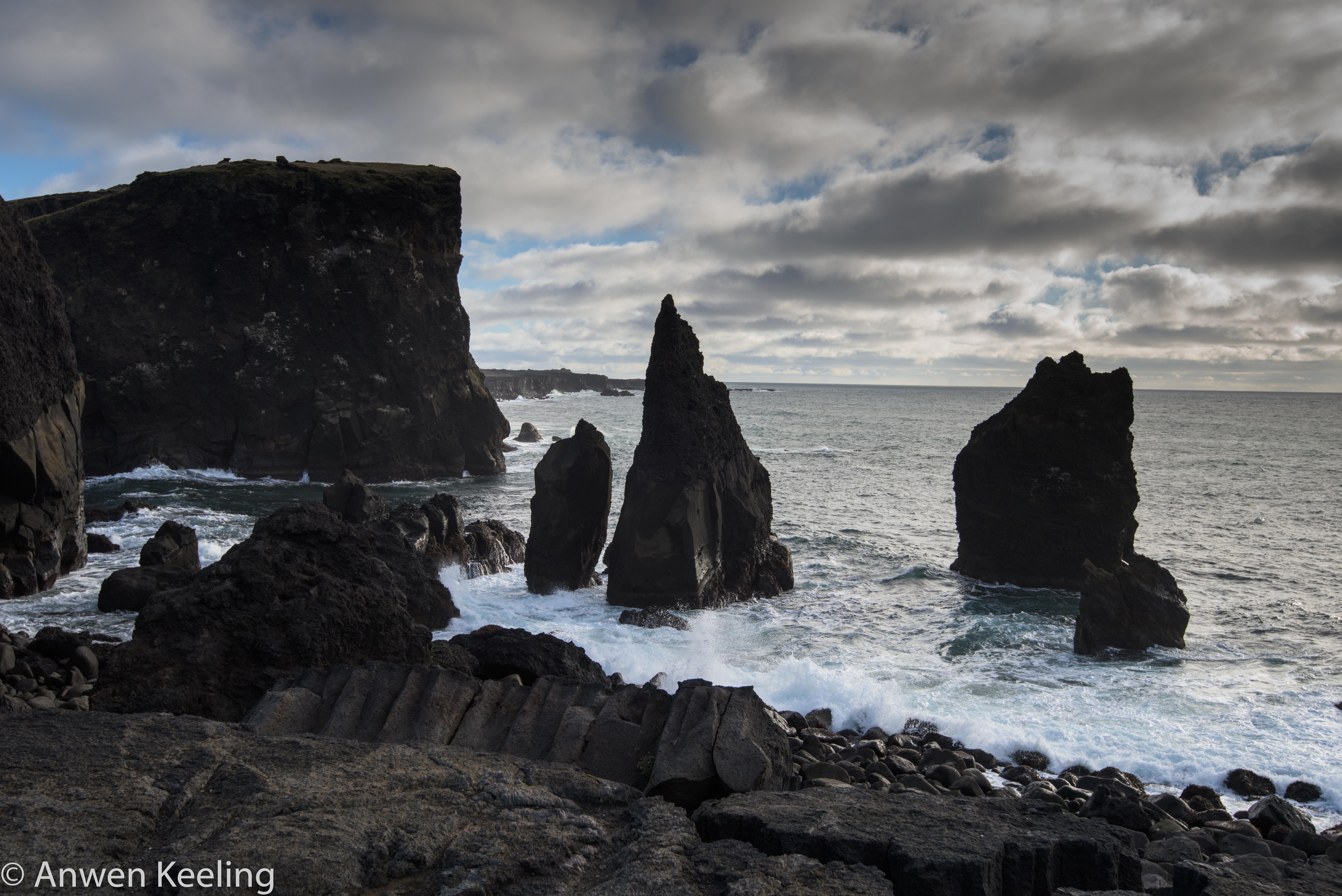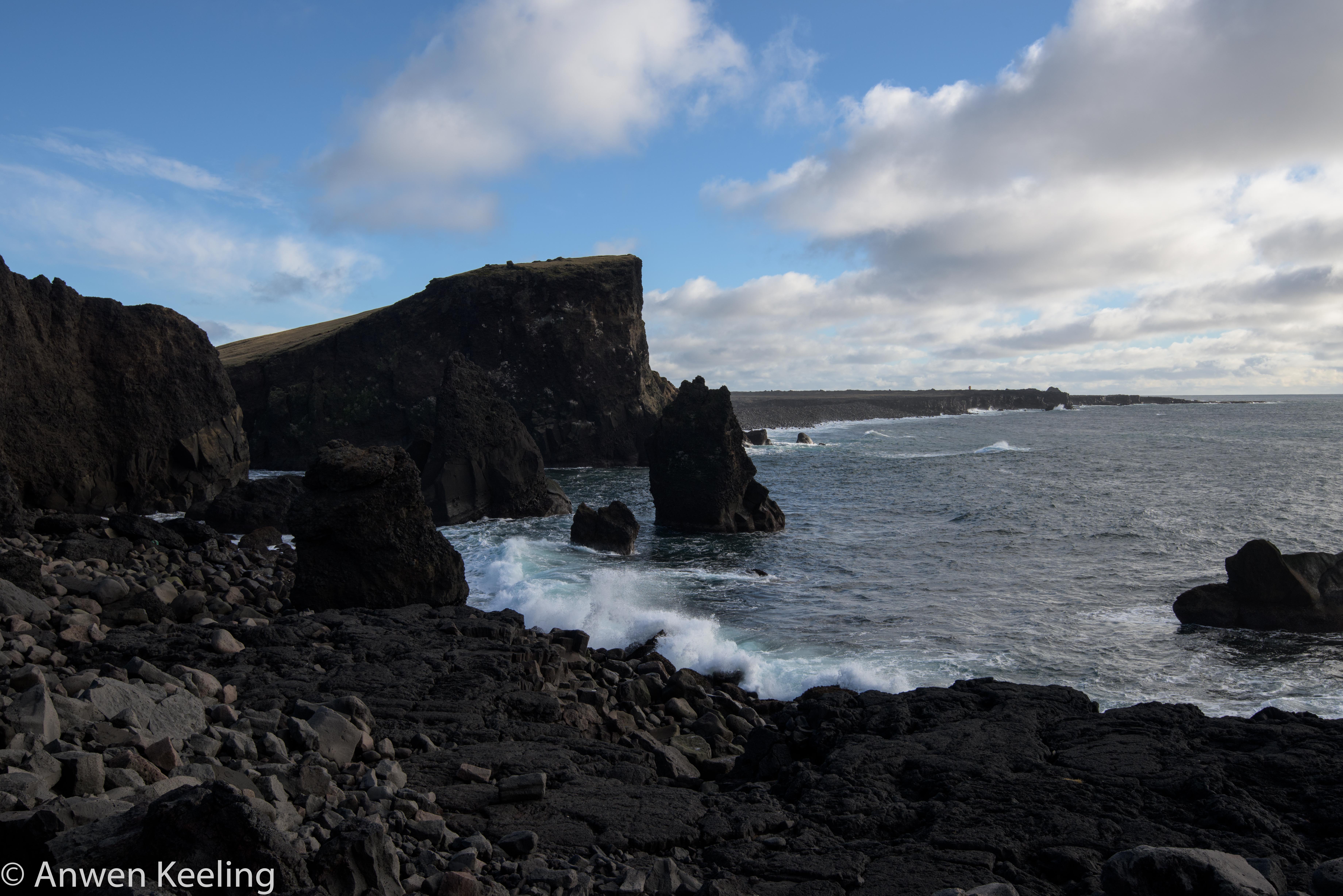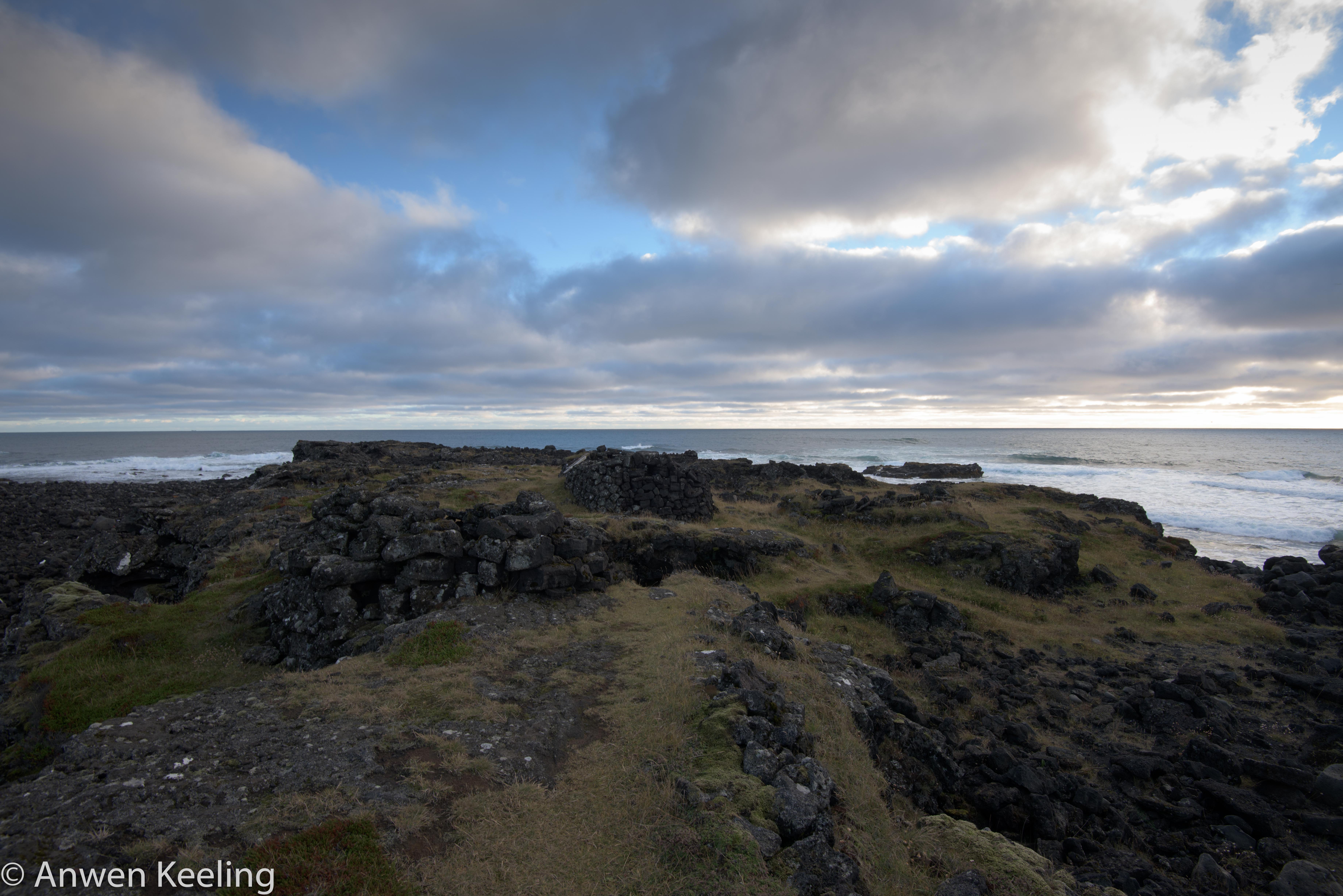 We then headed to Selatangar beach in the Krisuvik peninsula, Selatangar was a fishing village between Grindavik and Krysuvik, where fisherman came for 2 months of the year, to row out in open boats to fish, it was abolished after 1880, there are many stone ruins of the small houses still littered about. We climbed up a sort of cliff, and Jón showed me this incredible area of huge strange forms, made by lava. Just amazing- it was about now my camera battery died and my memory card filled up…. After a wonderful weekend exploring we then headed back to Reyjkavik along one of the most scenic roads I have ever been on.
