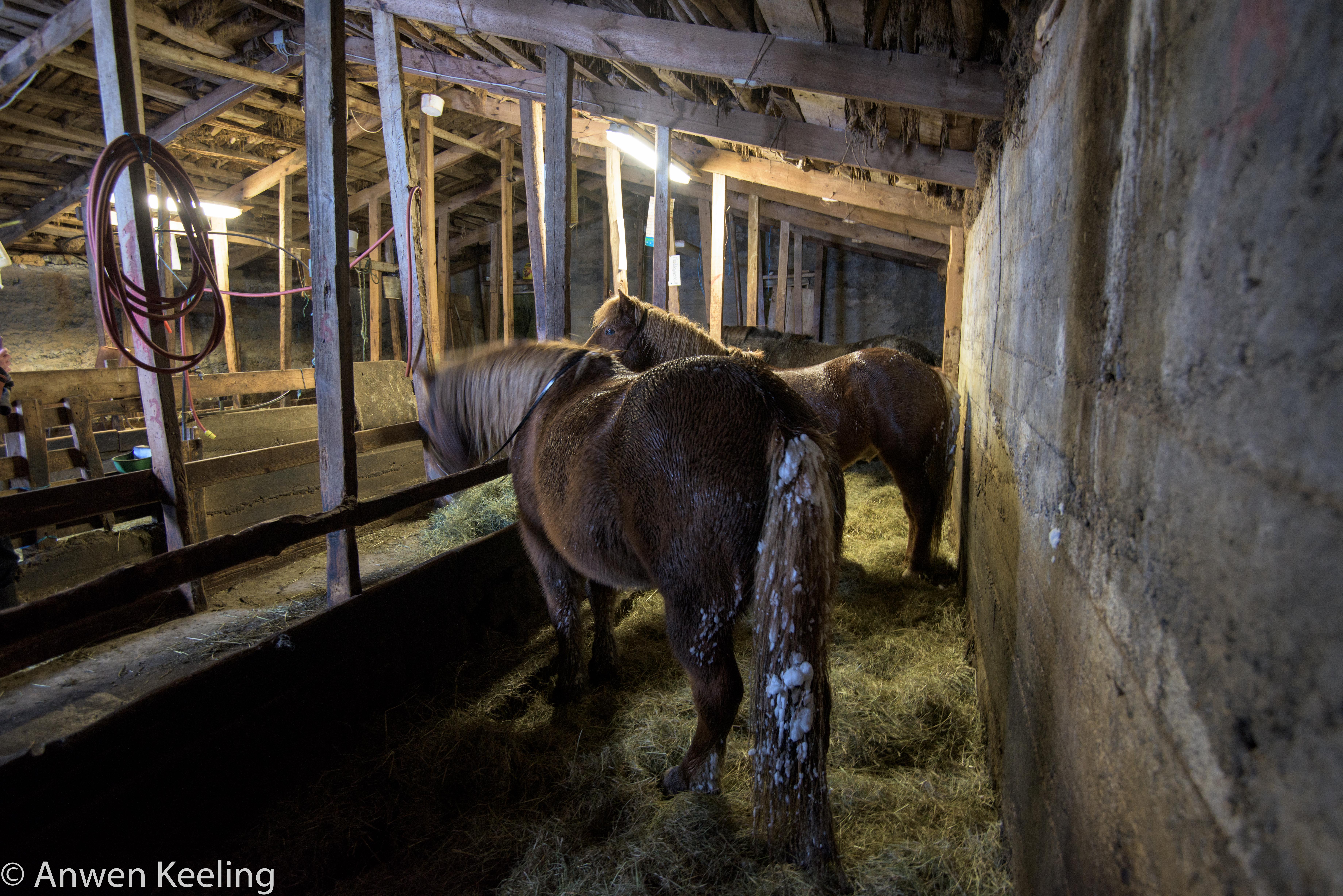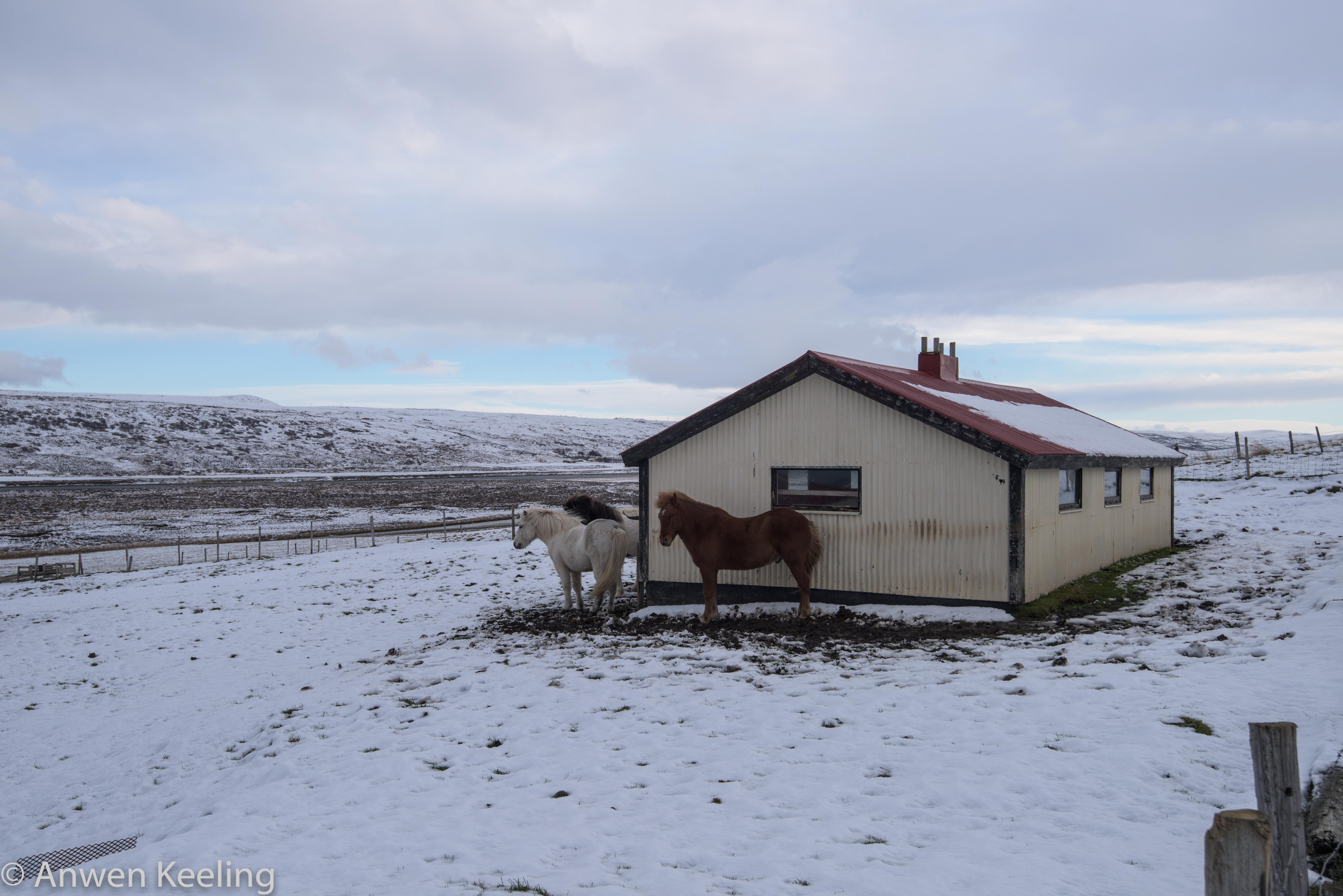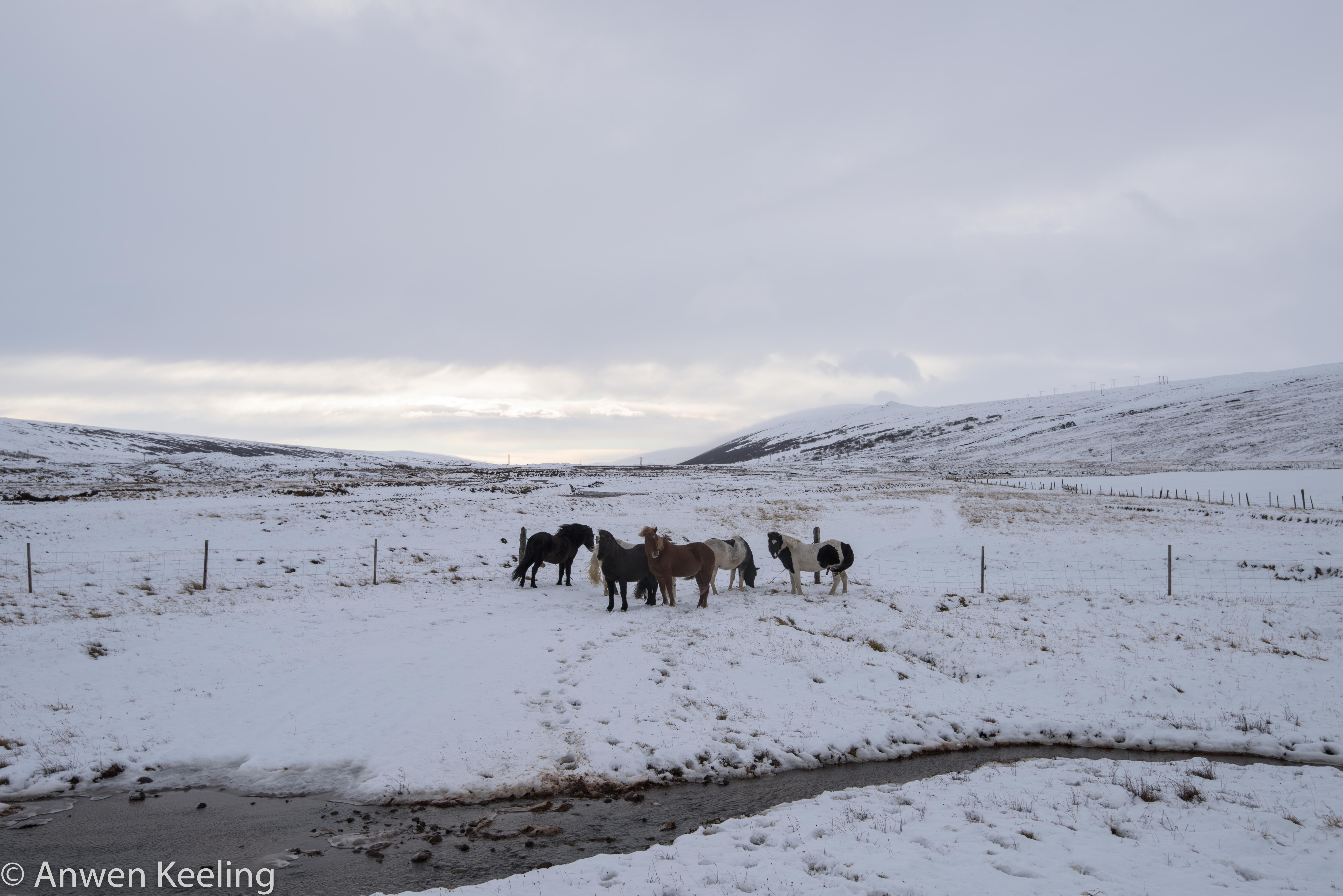 Saturday dawned, with a thick white blanket over everything. The morning was spent catching horses- I did manage to prove useful at this luckily, and once we caught them, we took them to the sheep barn, where Jón took their shoes off and readied them for their winter holidays. After a lovely lunch of slow roast lamb, which I fervently hoped was one of the sheep I had chased that day weeks ago on the mountain it was time to cut up one of the already slaughtered sheep and then head back to Akureyri for Jón’s sisters 40th birthday. It was a fantastic celebration- plenty of laughter, large amounts of singing Icelandic classics (which I did a poor attempt at humming too, even after the nice lady sitting next to me gave me a printed out song list…really must improve my Icelandic!), dancing, good food and wine, with some bad dancing at the end.. 🙂