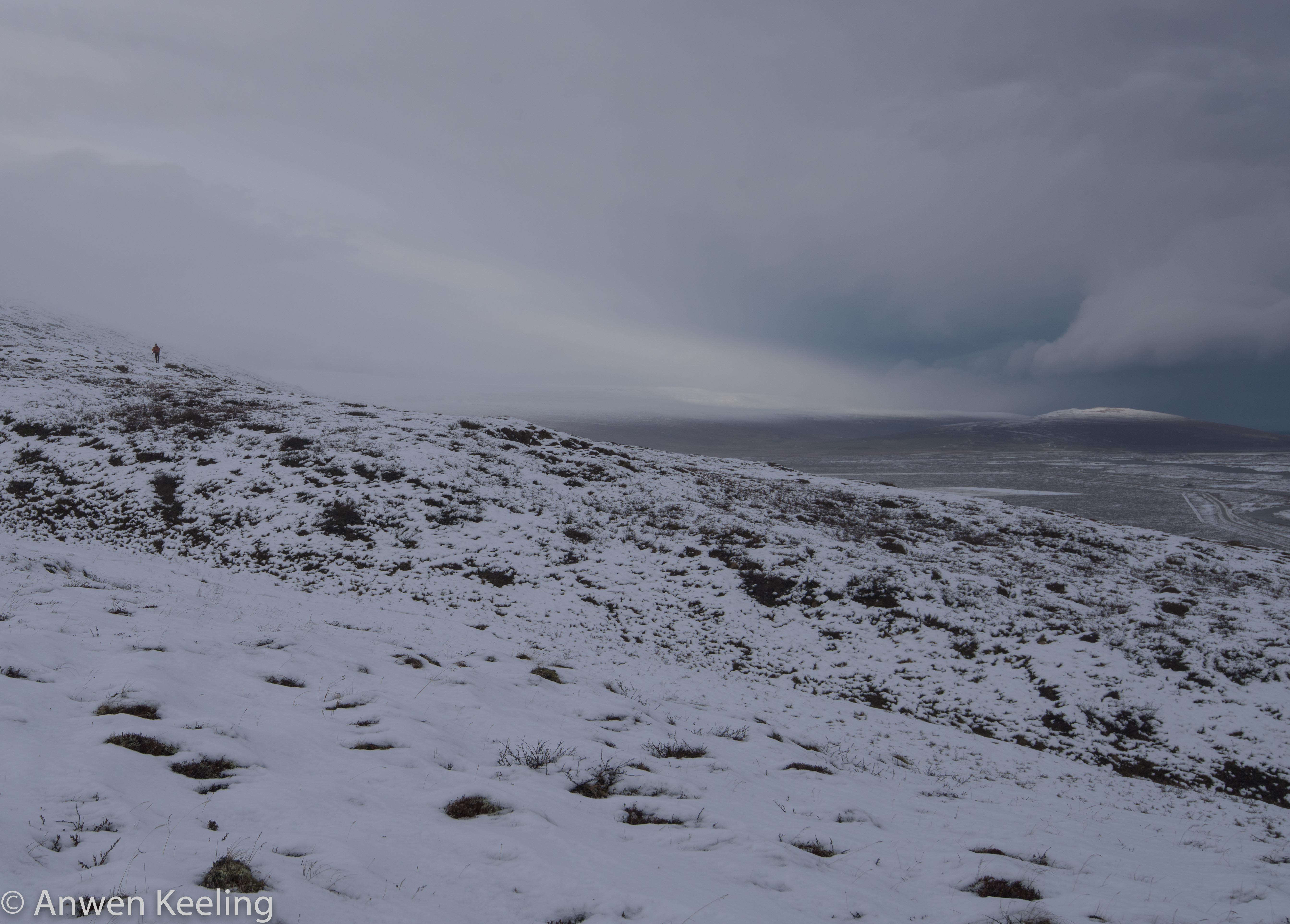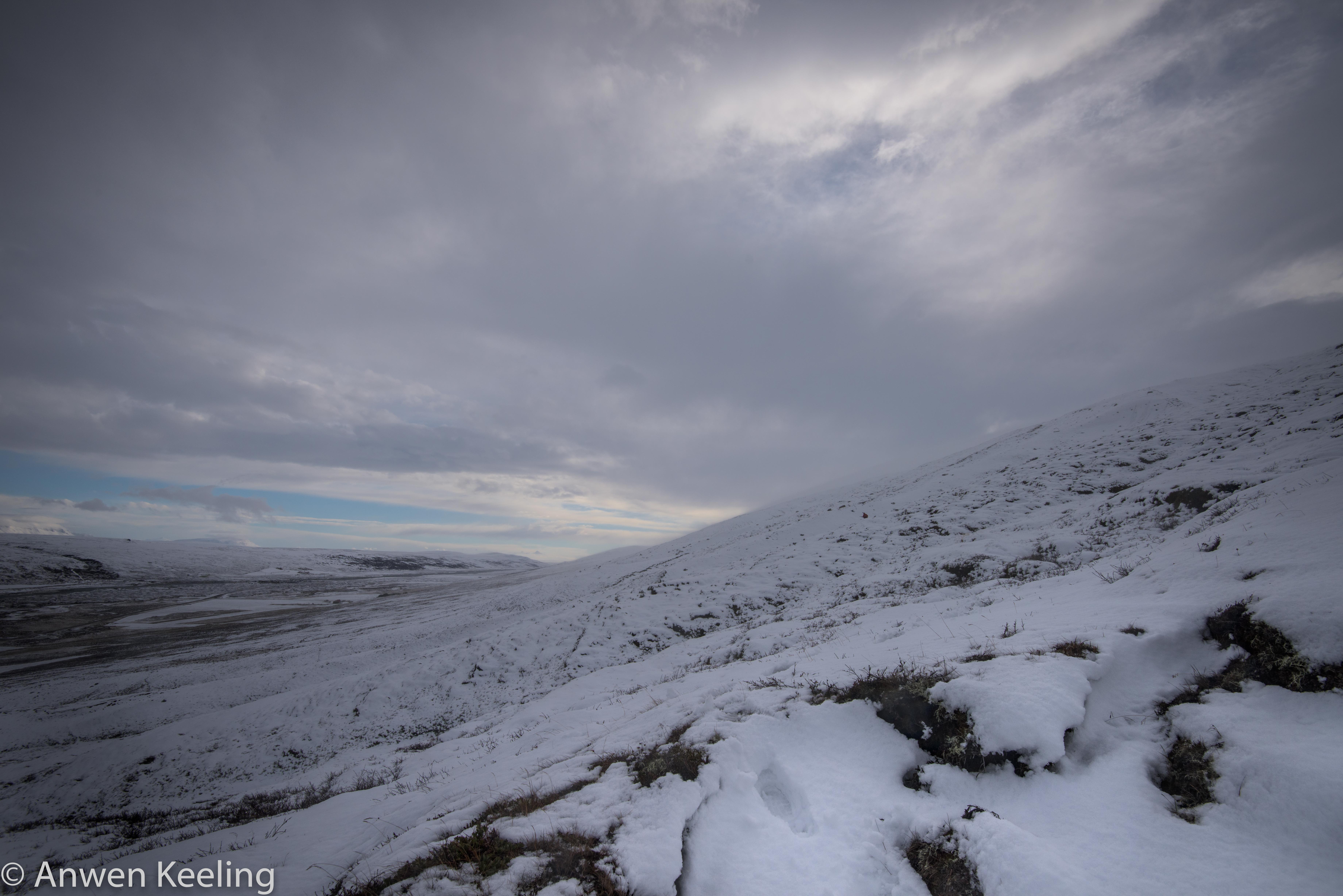 After a warming cup of tea at the farm, we layered up, and prepared for the hunt, I was quite excited, as clearly this was an adventure. I had visions of myself being some sort of human gun dog, and showing Jón how useful I could be on a wind blown snowy mountain- I only had 2 more days to prove to him how truly useful a middle aged Australian woman was. Armed with his trusty 12 gauge, Jón and I went in search of the Rjúpa- conditions were not fully in our favour with a howling wind and heavy snow falls. Luckily for me these conditions ruled out a full ascent of the mountain, and we had to be content with 1/2 way up (huge sigh of relief.. still it was far enough to have great views).. Jón bounded up the snow covered hillside like one of those irritating sheep we had chased, zig zagging back-and-forth looking for the enemy (yes the pretty little white Rjúpa had taken on the role of James Bond villains- fairly sure I saw one with an eye patch on) I steadily pottered up behind, with the odd break to “take a photo” (get my breath back). With the howling wind covering any noise, Jón didn’t need a complex ruse de guerre before he was successful in his mission. With him ruthlessly trawling the hillside focused on his enemy, I realised my usefulness was actually non existent, and if anything tottering about on the hillside was more hindrance than help.