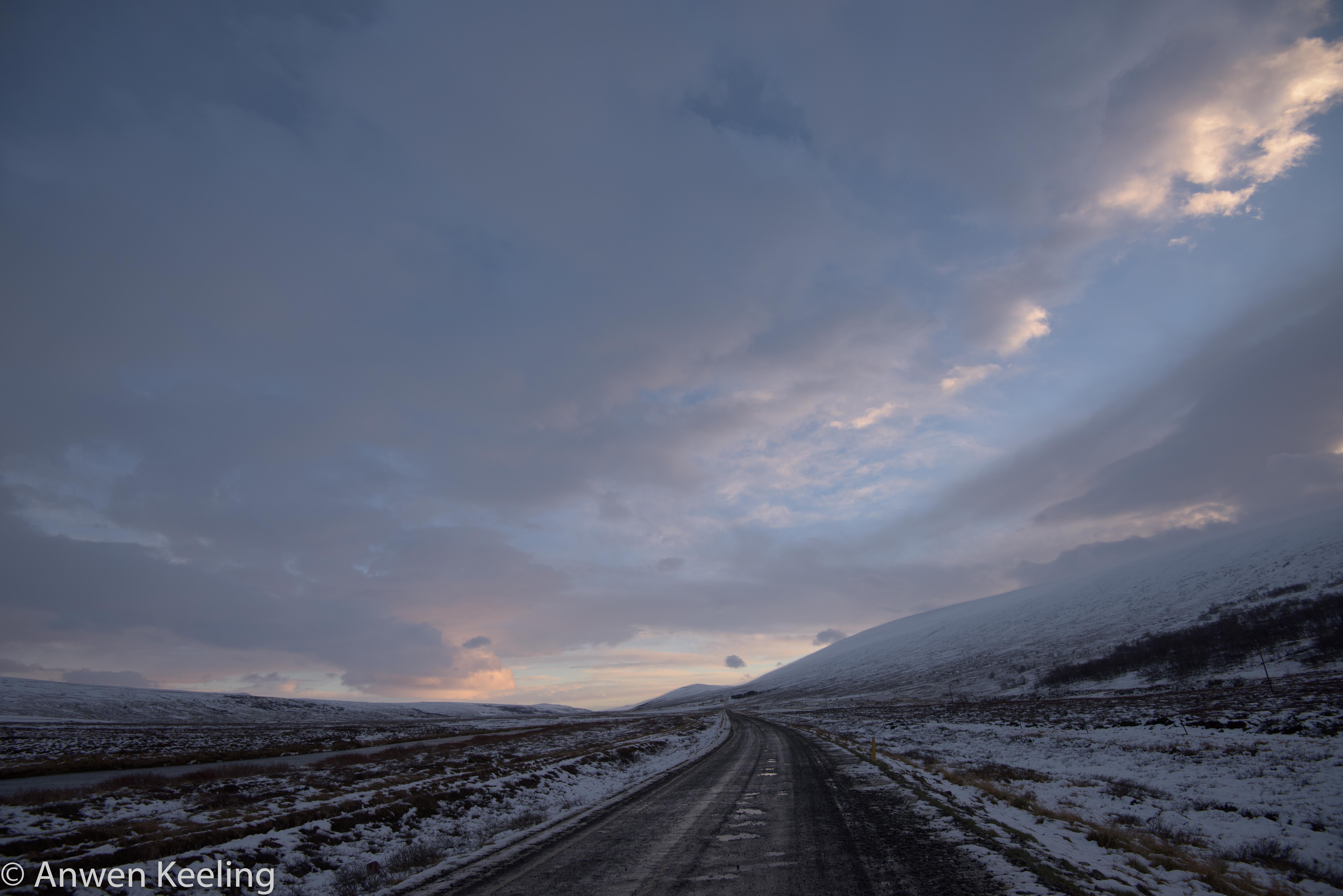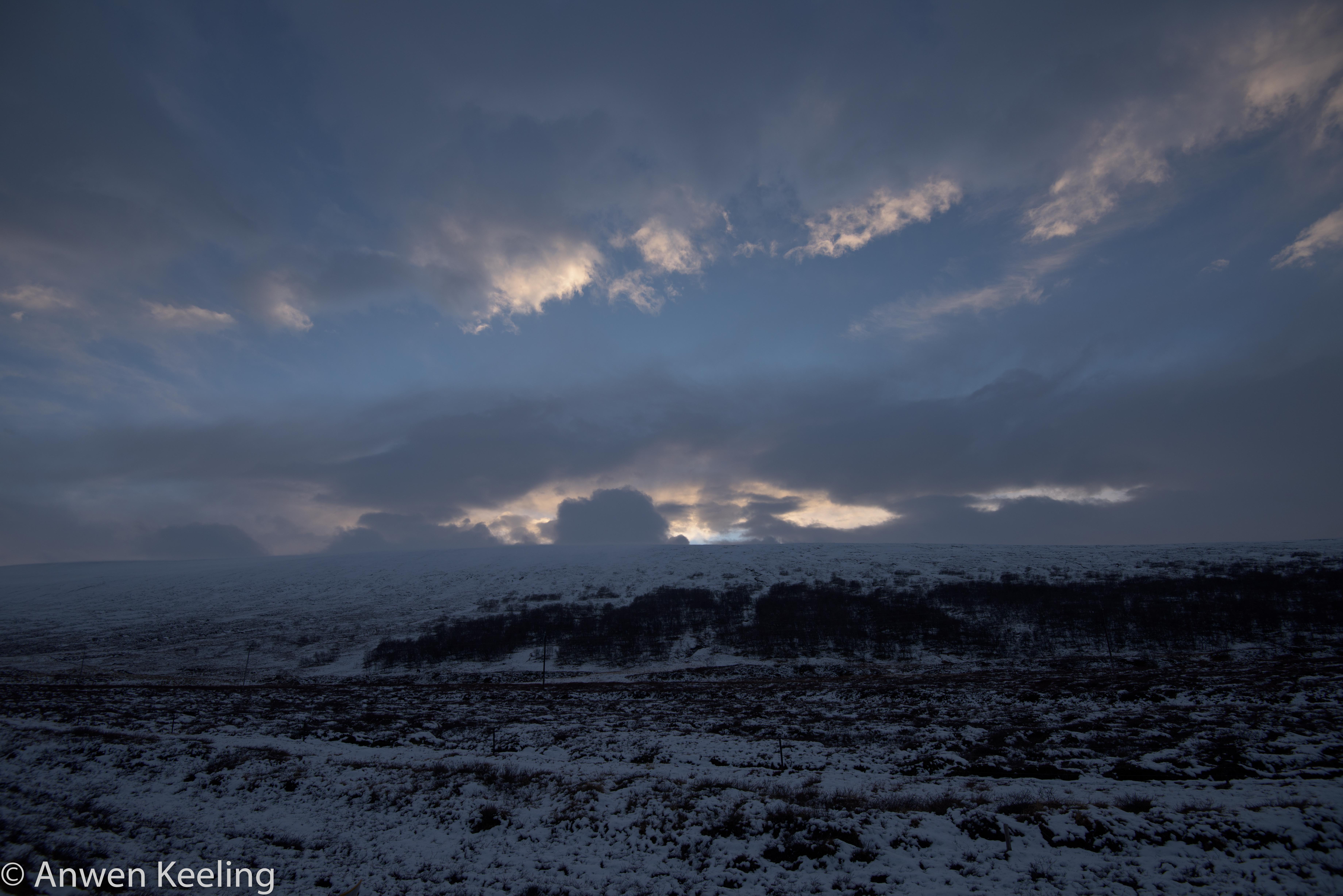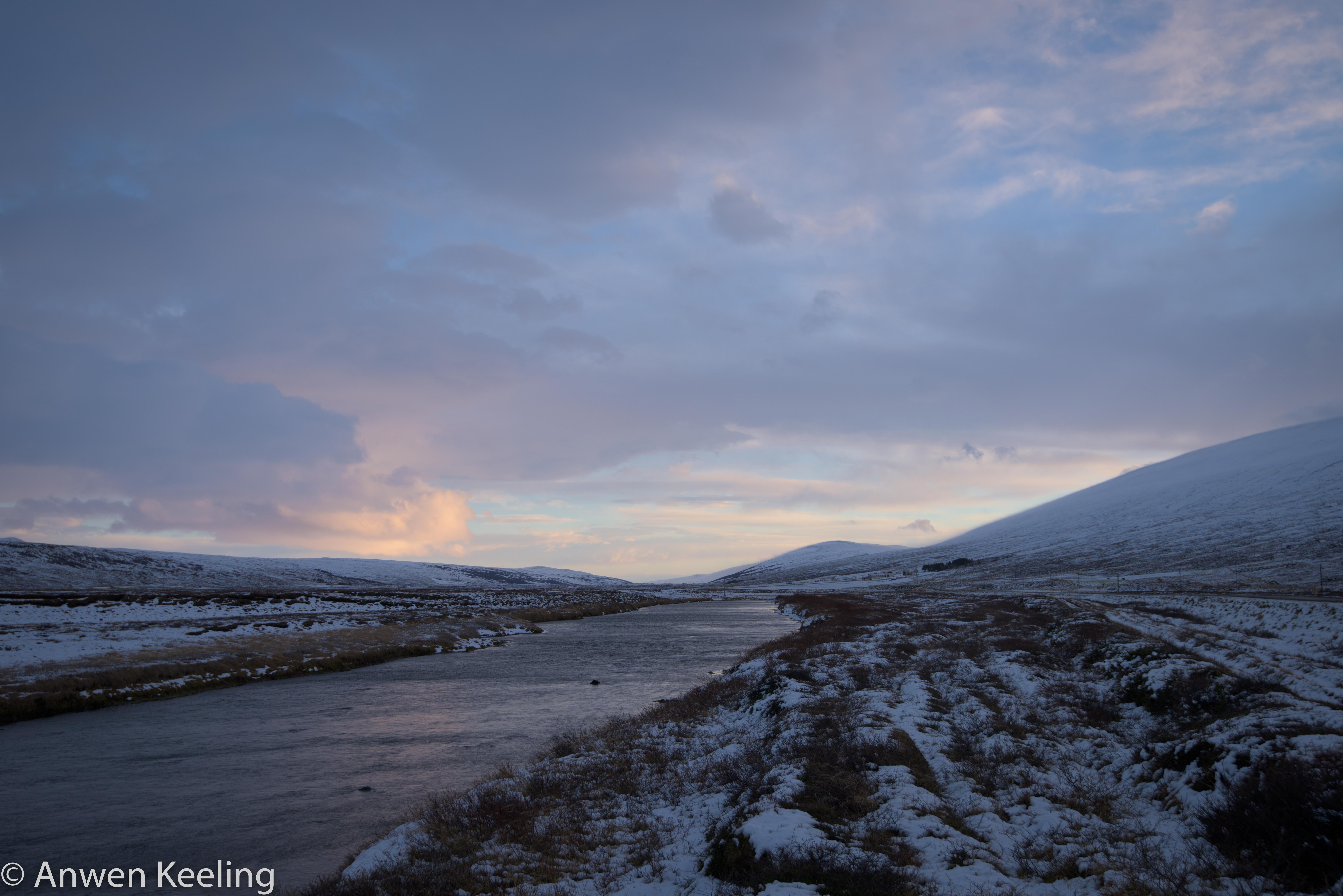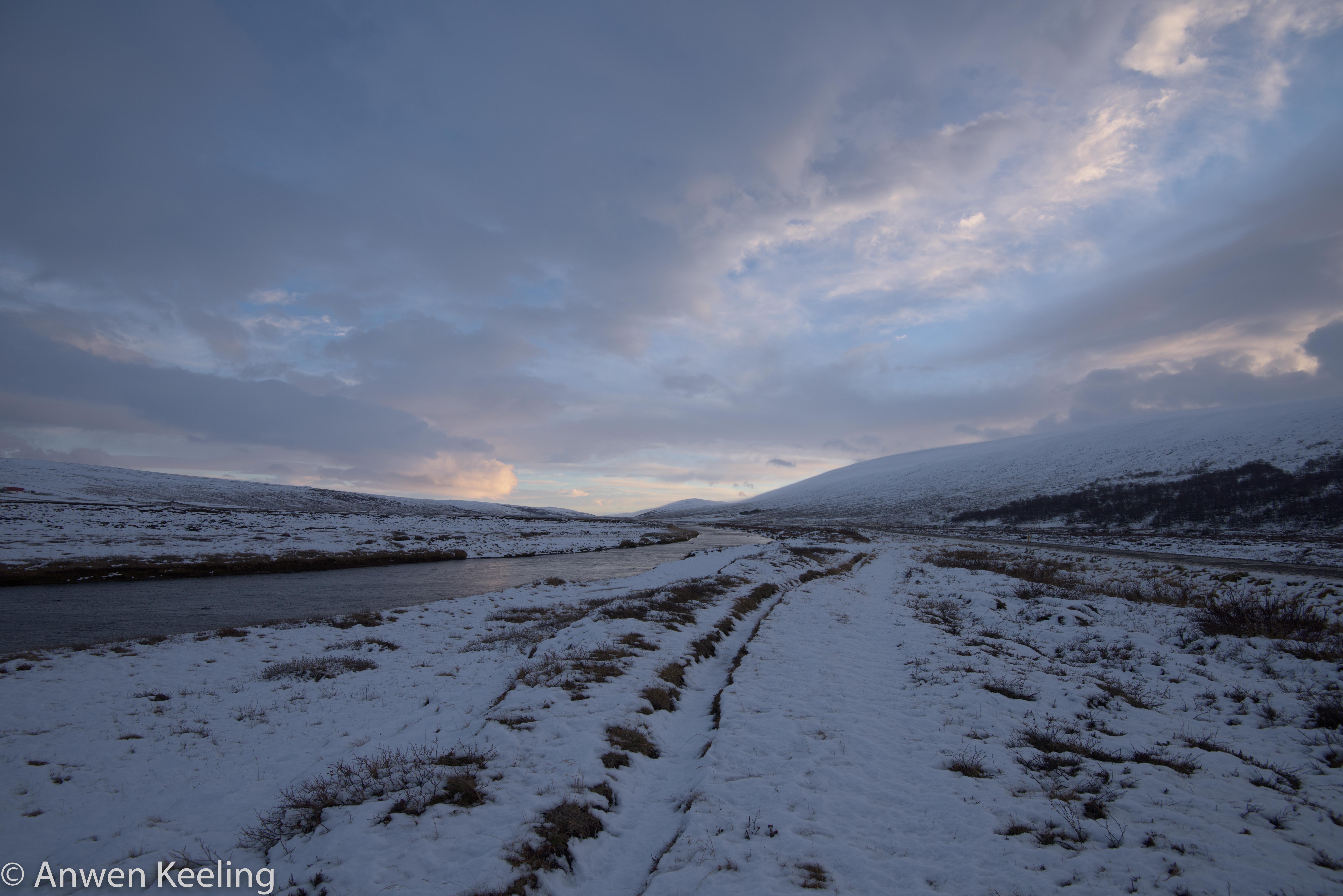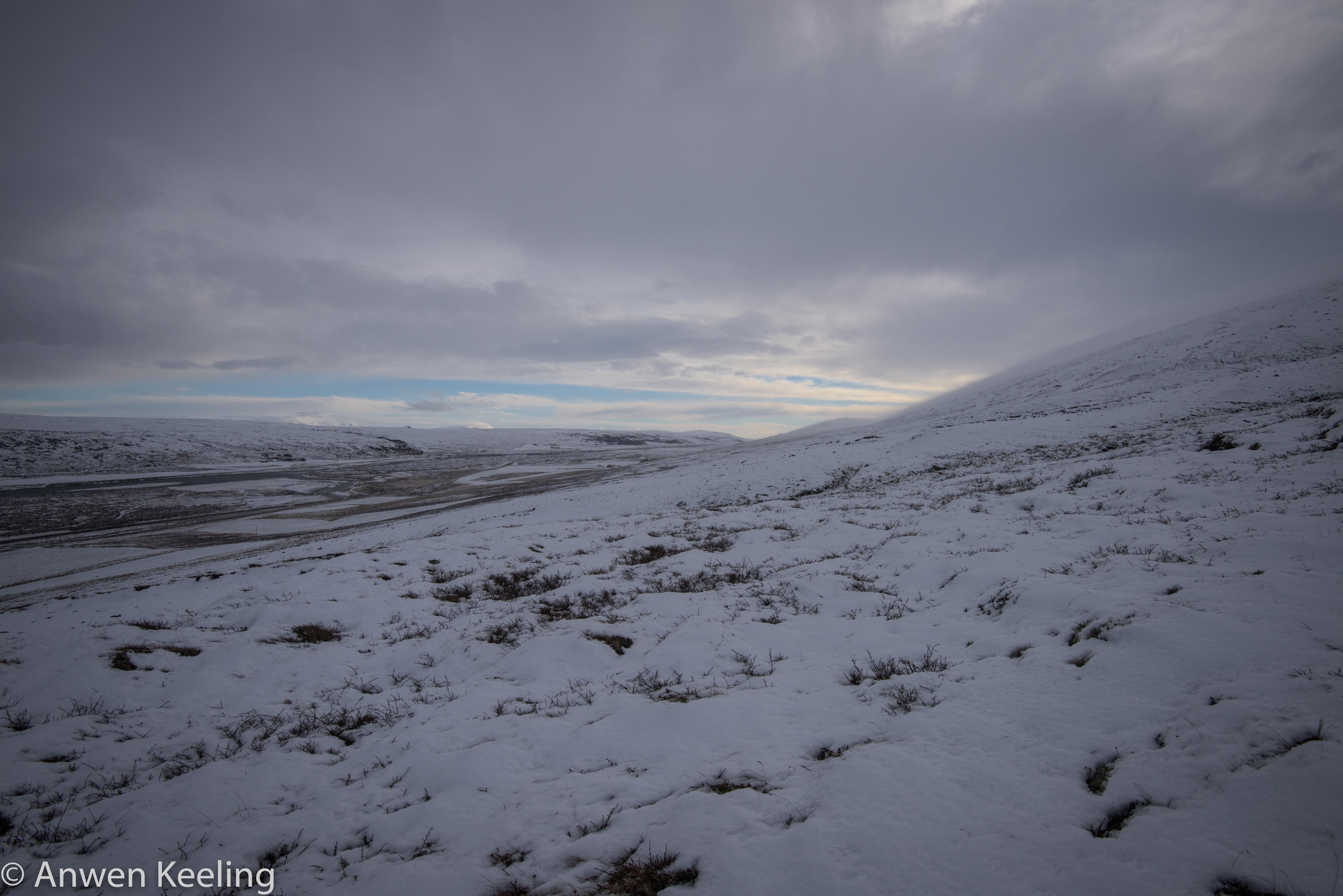 So after entertaining myself for an hour or so further up the mountain, traversing across & taking some fairly average photographs, I decided retreat was the best option, and that if I went back down the mountain, I could walk up the road we had come in on that looked so pretty with its river and mountains in the back drop. I managed to call him- yep we had mobile range on the mountain, and “yes he was very focused, and no I would not be missed for the near future whilst he waged war… Christmas lunch would go ahead….and we would meet up in a few hours”. Climbing down the mountain was actually trickier than going up the mountain… the wind almost knocking you off your feet, which wasn’t helping my dexterity. I did toboggan down the mountainside numerous times much to my chagrin. Once down the hillside I met some lovely albeit cold ponies who were keen to model for me. Then I walked with the wind behind me as far down the road as I could towards some very spectacular looking mountains, which the setting sun was just hitting- I am like a moth to a flame when it comes to nice light in the landscape. Luckily my Nikon toy is very entertaining so I managed to wile away the hours- without talking to the flowers (Wizard of Oz reference- anyone too young to remember), the walk back was not as enjoyable- walking into the gale force wind was actually quite challenging!! Anyway by the time I made it back to where we had parked the car Jón could be heard- well his shot gun could at any rate, and he reported in that he would be not long after me. A successful hunt was had with 13 Rjúpa departing this world. A hot bath, dinner and an early night entailed….tomorrow was a new day and I had to prove my usefulness somehow….