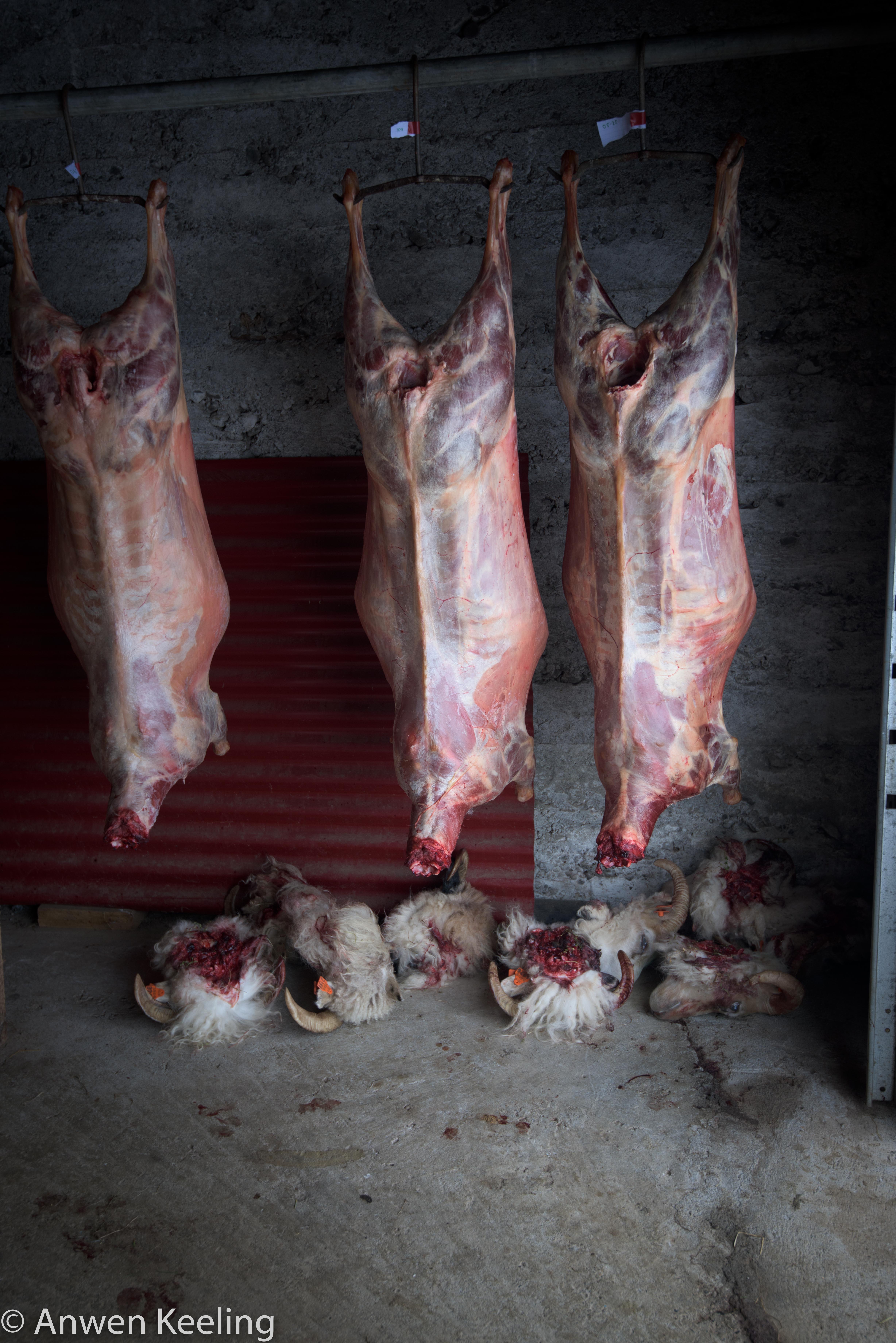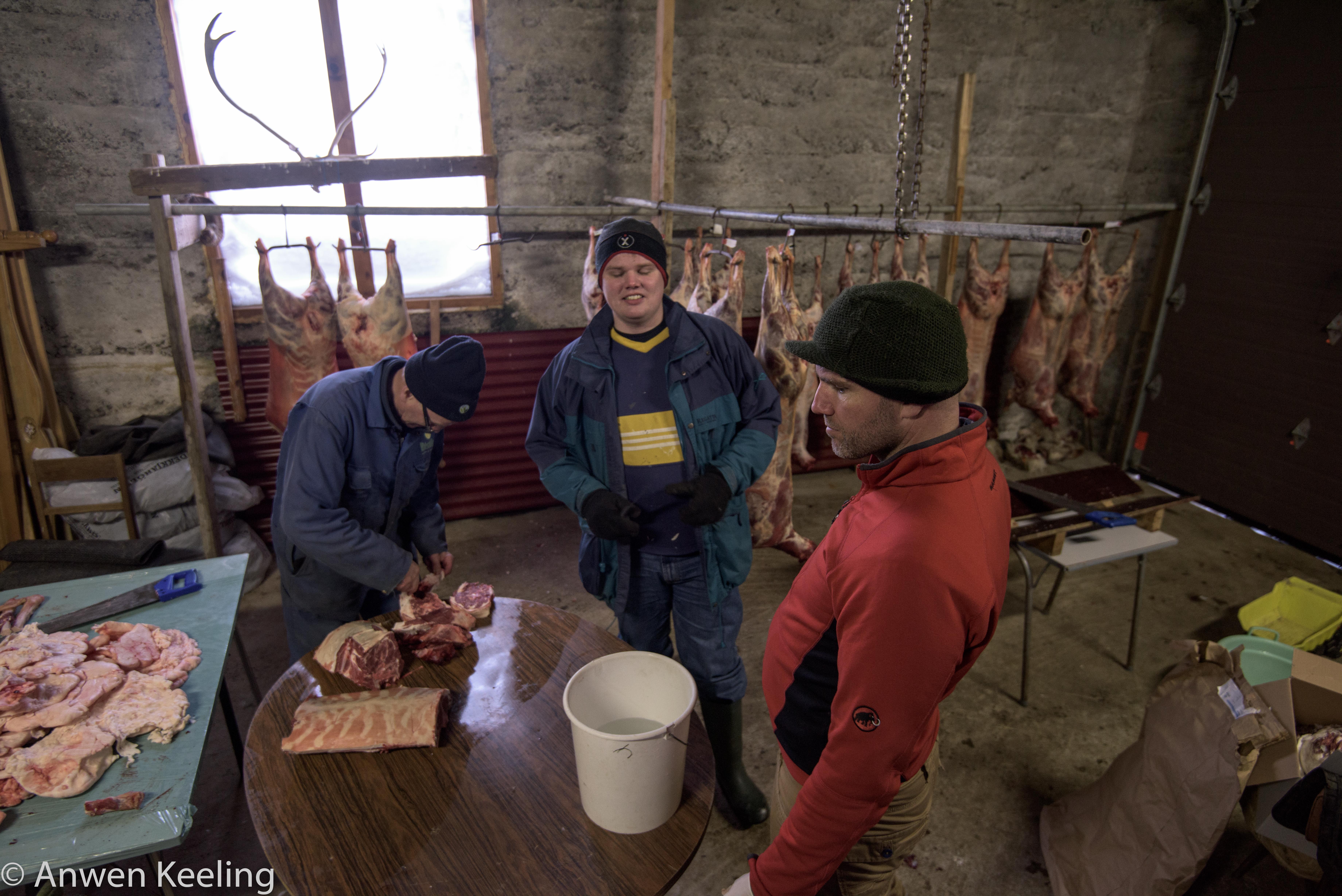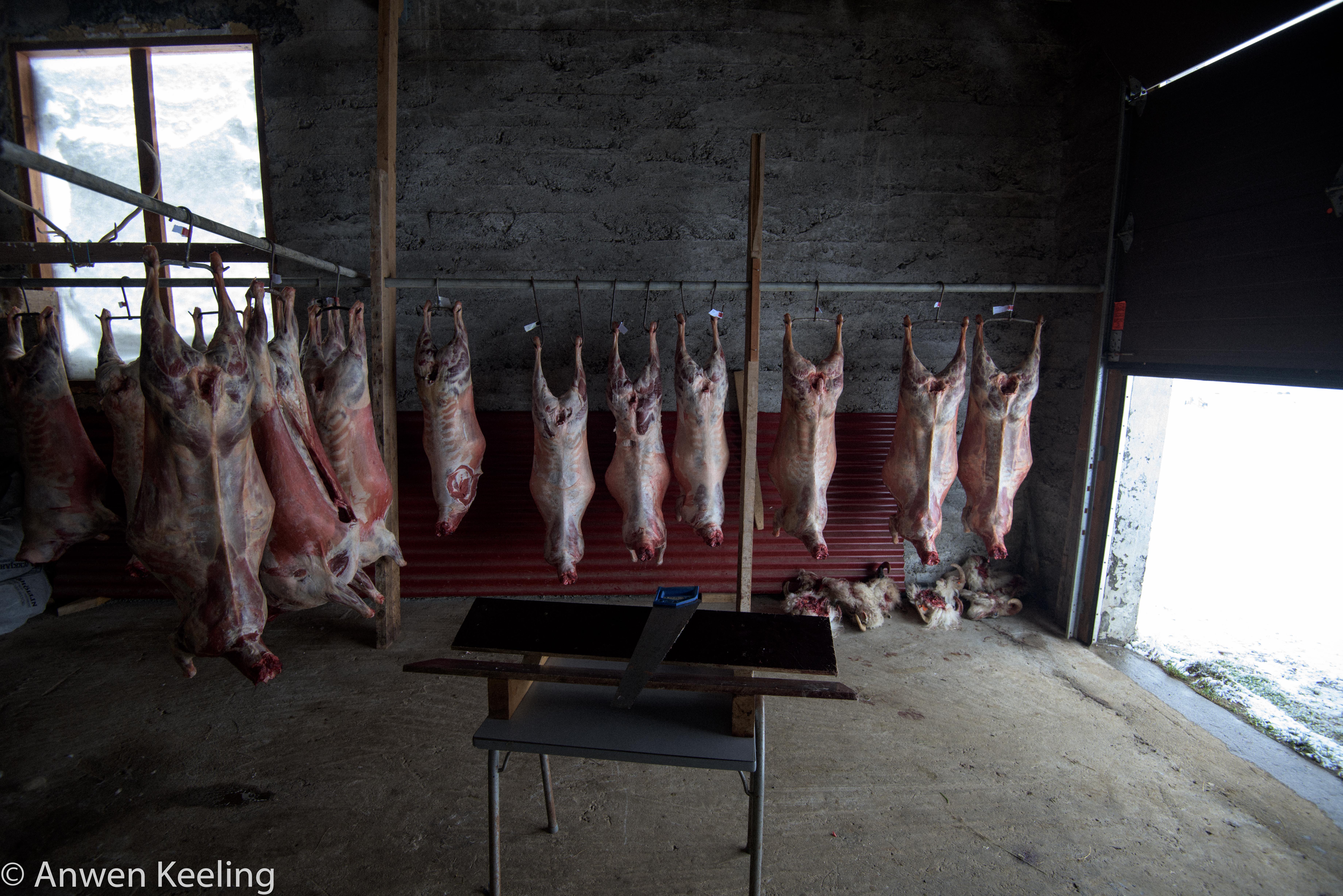 Through out the book, I connected with the descriptions of the landscape, and ways of life and ironically when Jón asked me to the farm and said we were to cut up a sheep or two, they were just doing exactly that in the book… It’s something they have always done before winter comes, the meat is kept for the family. They use every part of the animal: the skin, the head, the heart and the fat to make sausages. Waiting at the farm were 14 sheep, slaughtered earlier in the week, these were hanging in the shed- refrigeration isn’t a problem here- in fact we left a small blow heater on with them to stop them freezing (with Jón’s 5 siblings, children and large amounts of extended family nothing would be wasted)!! The sheep roam free from late spring, sustained by the Icelandic moss, wild grass and berries that grow on the loose volcanic soil and which lend the meat its unique, almost gamey taste. Come late autumn they are rounded up on horseback (more successfully than when I tried to herd them… luckily as otherwise everyone would starve) the way it has been done since the time of the earliest settlers. This centuries old free range tradition explains why the Icelandic lamb tastes so lean and delicate. For a long time, Icelandic food culture was driven by necessity. Icelandic food was local because of both the country’s and the individuals isolation, it was organic because large-scale agriculture and factory farming was difficult, it was free range because it seemed the most practical way of using the sparse vegetation spread out over large distances… not too much has changed.