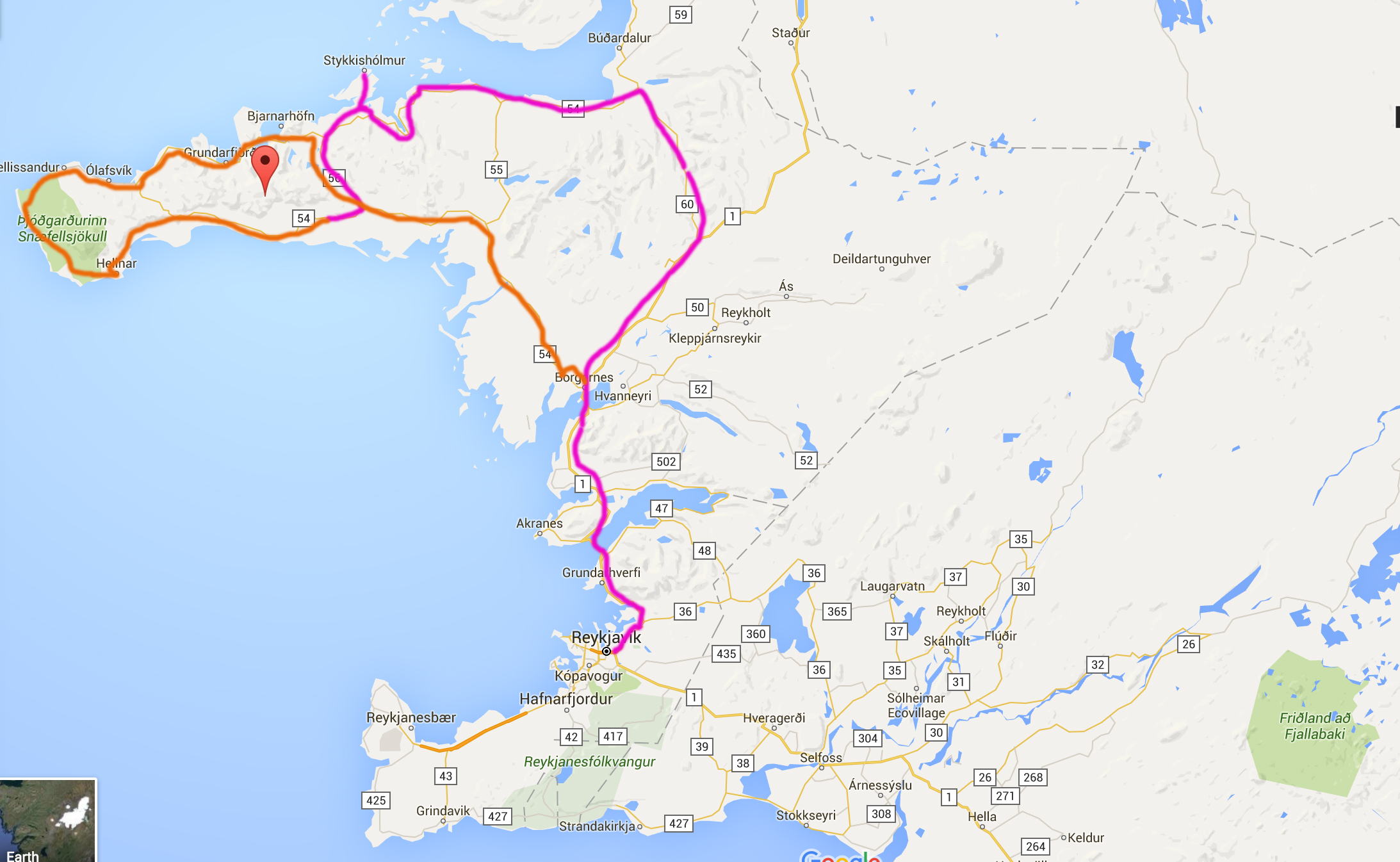 route snaefelnes